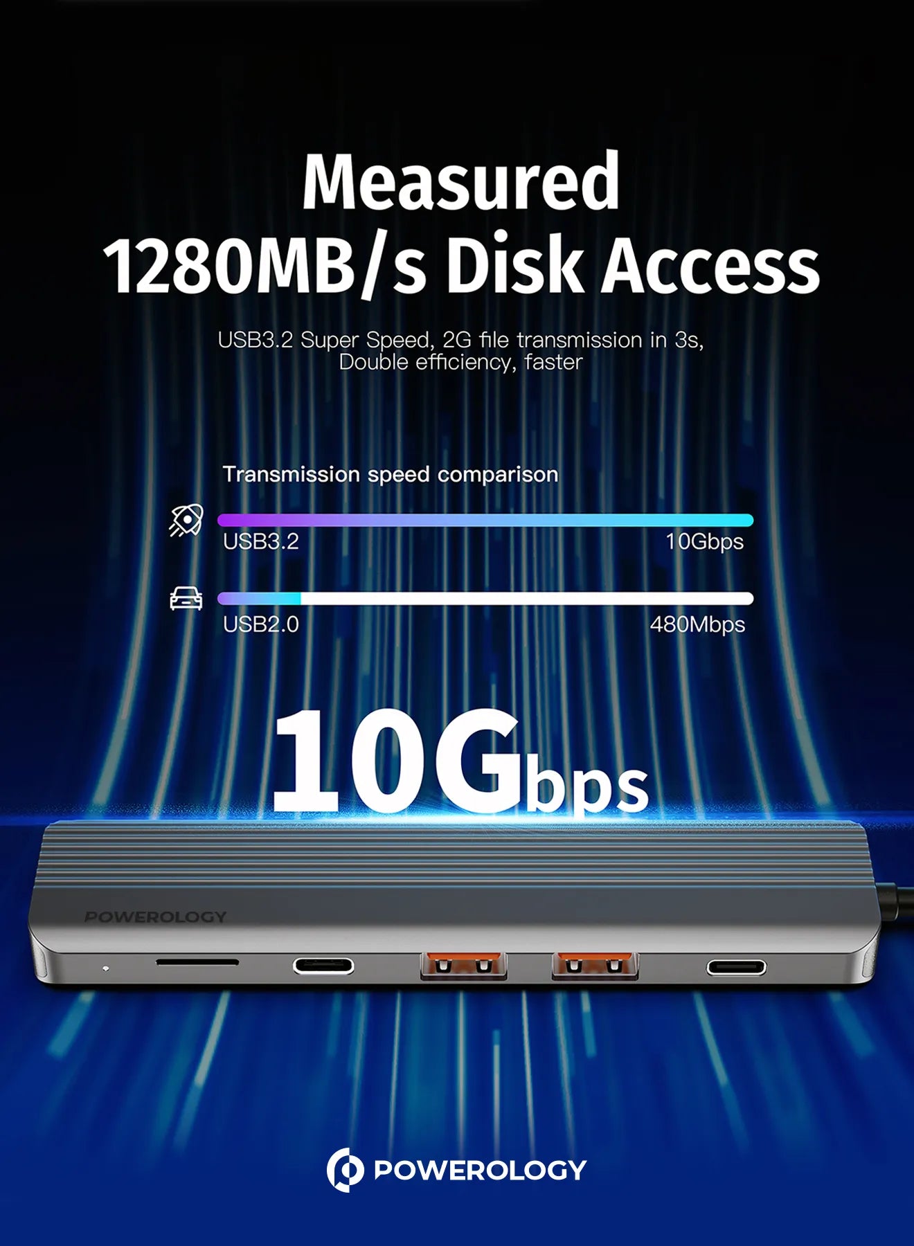 Powerology 6-in-1 Slim 4K HDMI USB-C Hub is a multi-port Hub with the ability of fast charging (PD100W) and high-speed... اقرأ المزيد