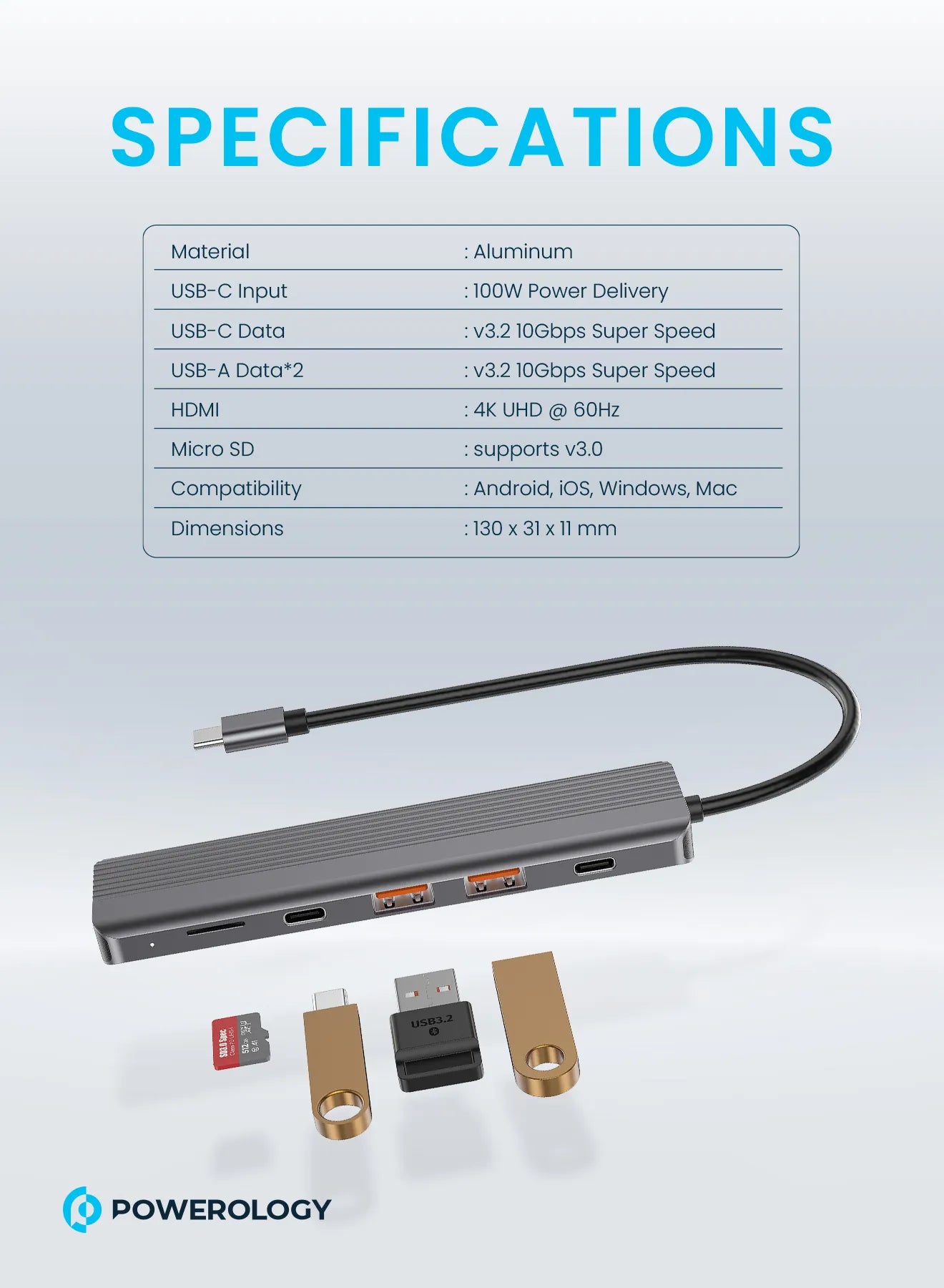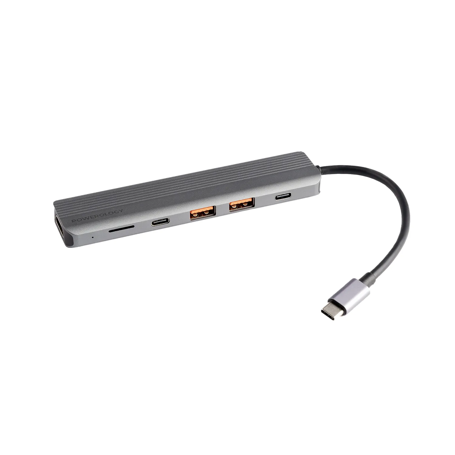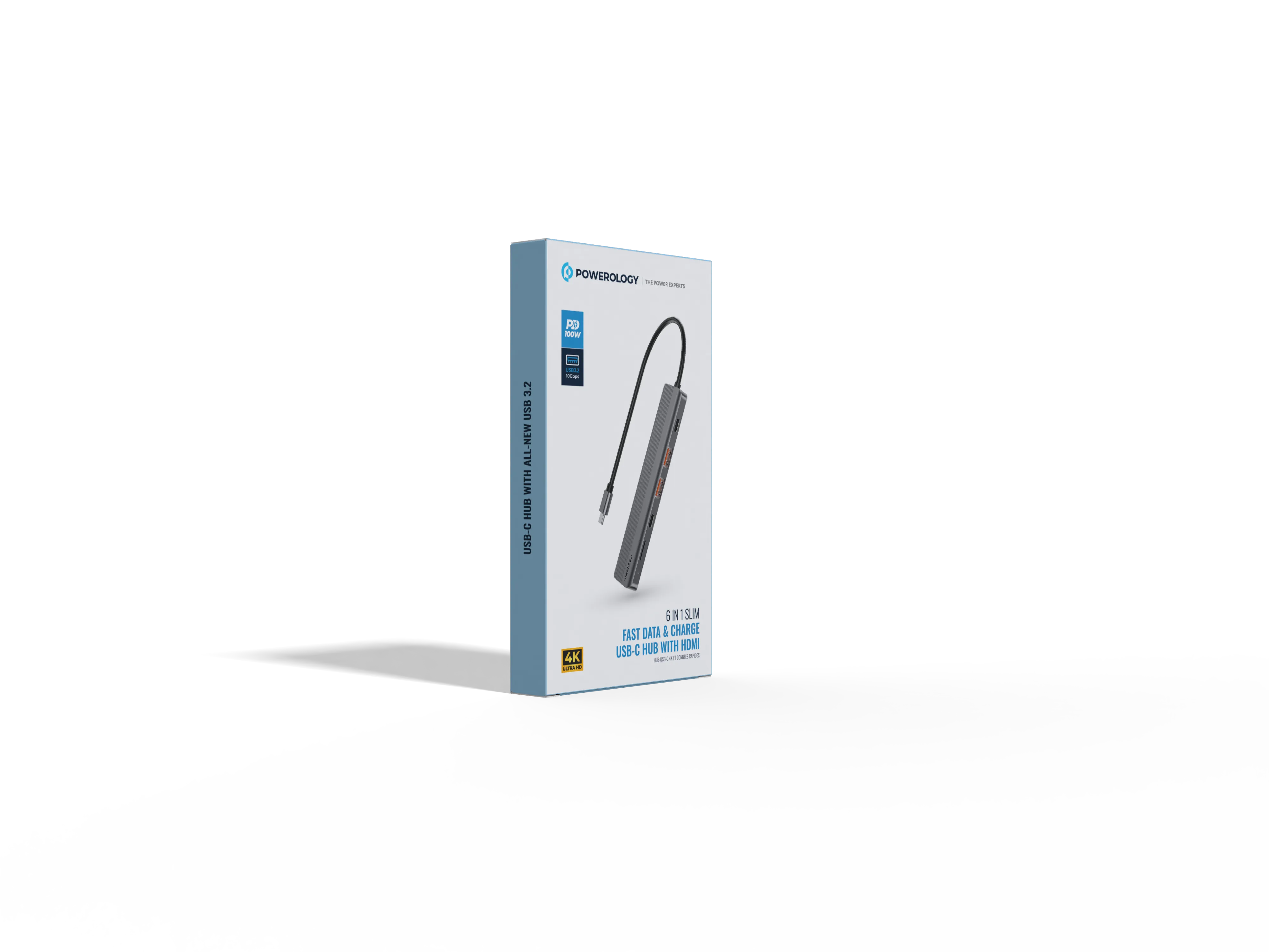 Powerology 6-in-1 Slim 4K HDMI USB-C Hub