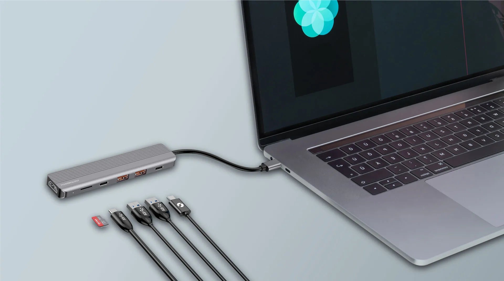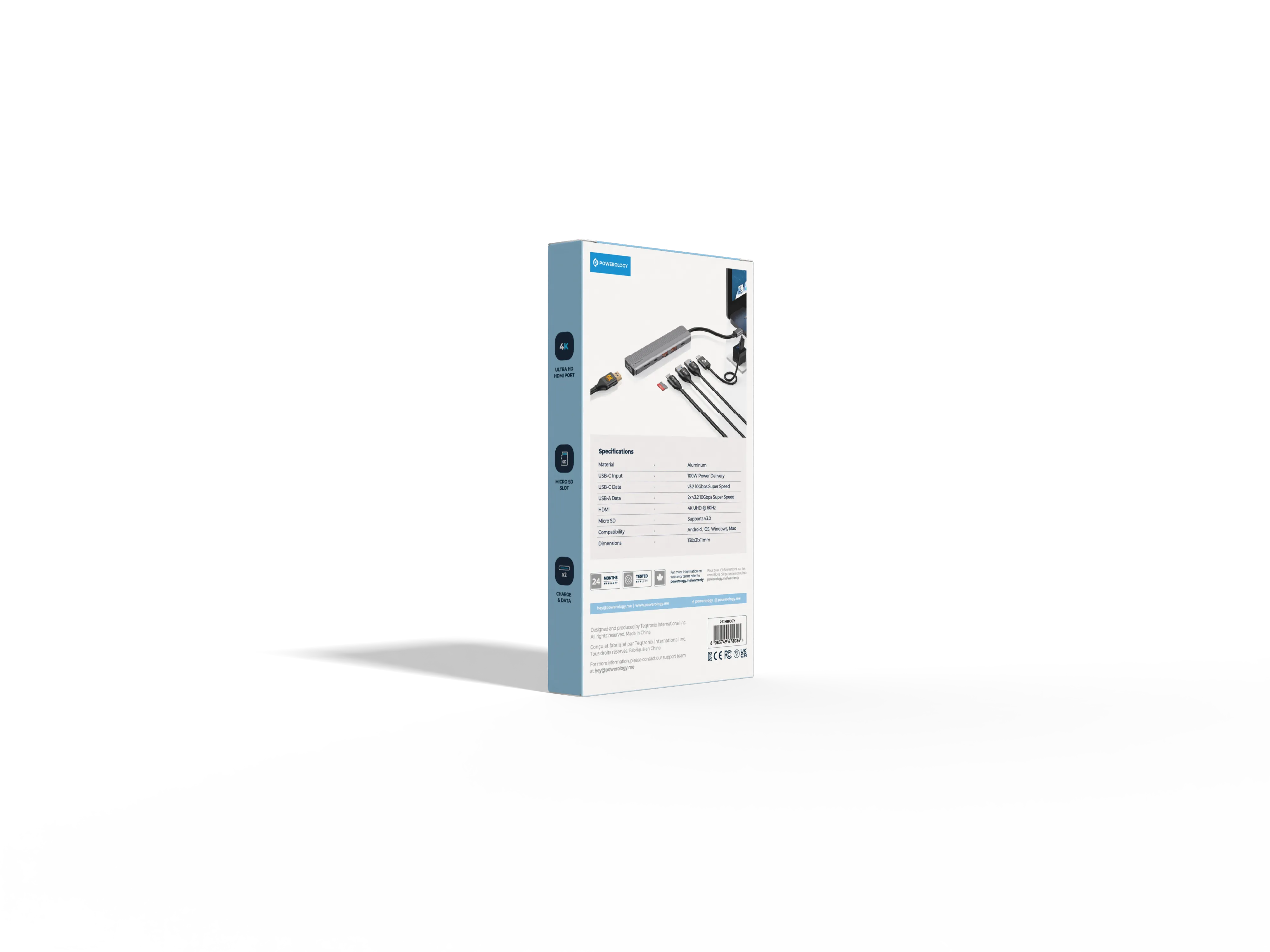 Powerology 6-in-1 Slim 4K HDMI USB-C Hub is a multi-port Hub with the ability of fast charging (PD100W) and high-speed data transfer (10Gbps). It features USB-A and USB-C version 3.2 ports, which refer to the latest standard for USB connectors, accommodating a wide range of devices. The 4K HDMI Ultra HD output ensures a crystal-clear visual experience. Additionally, it is provided with the Micro SD slot to allow easy access to memory cards, ideal for photographers and content creators. Due to its connectivity, streamlined setups, efficient data transfer, charging possibility, and comprehensive features, Powerology 6-in-1 Hub is the perfect choice for professionals who are always in need of extra port for linking more electronic devices in order to optimize their device capabilities.