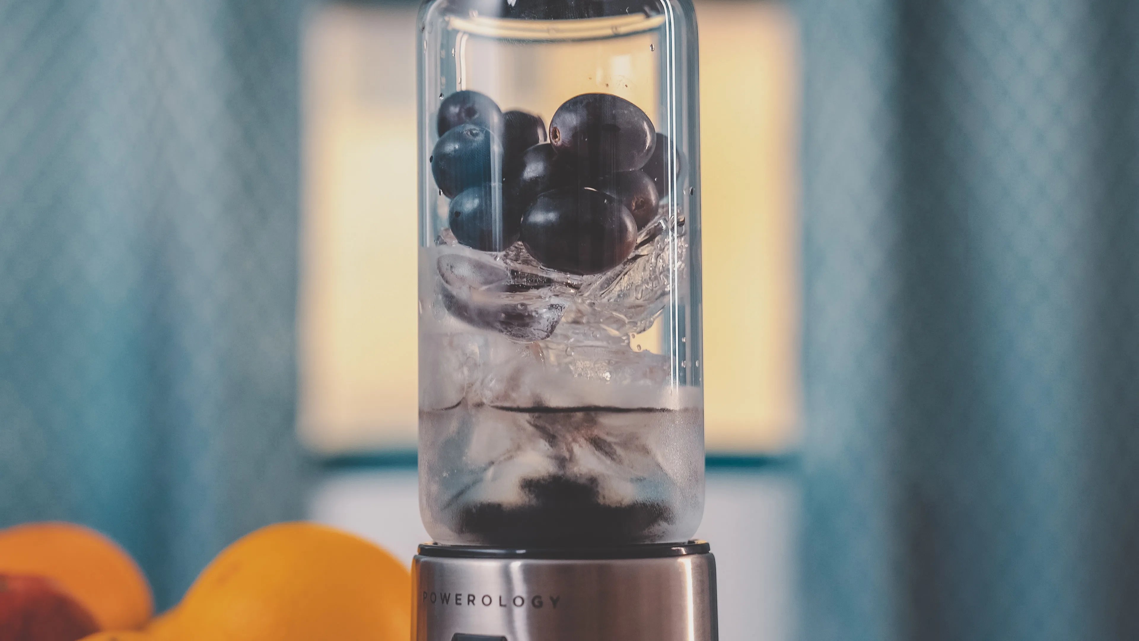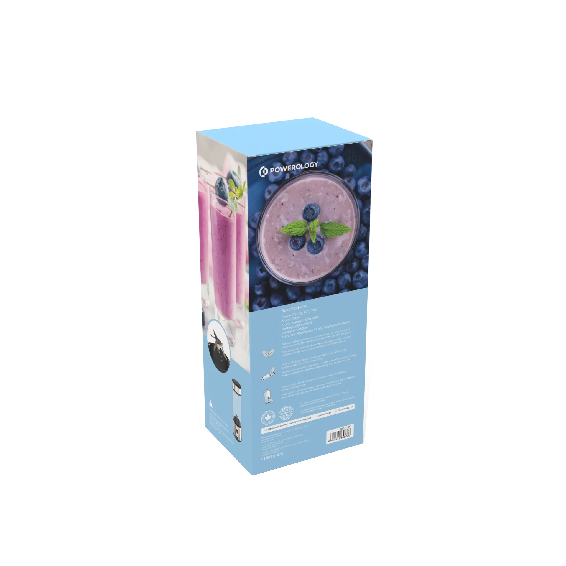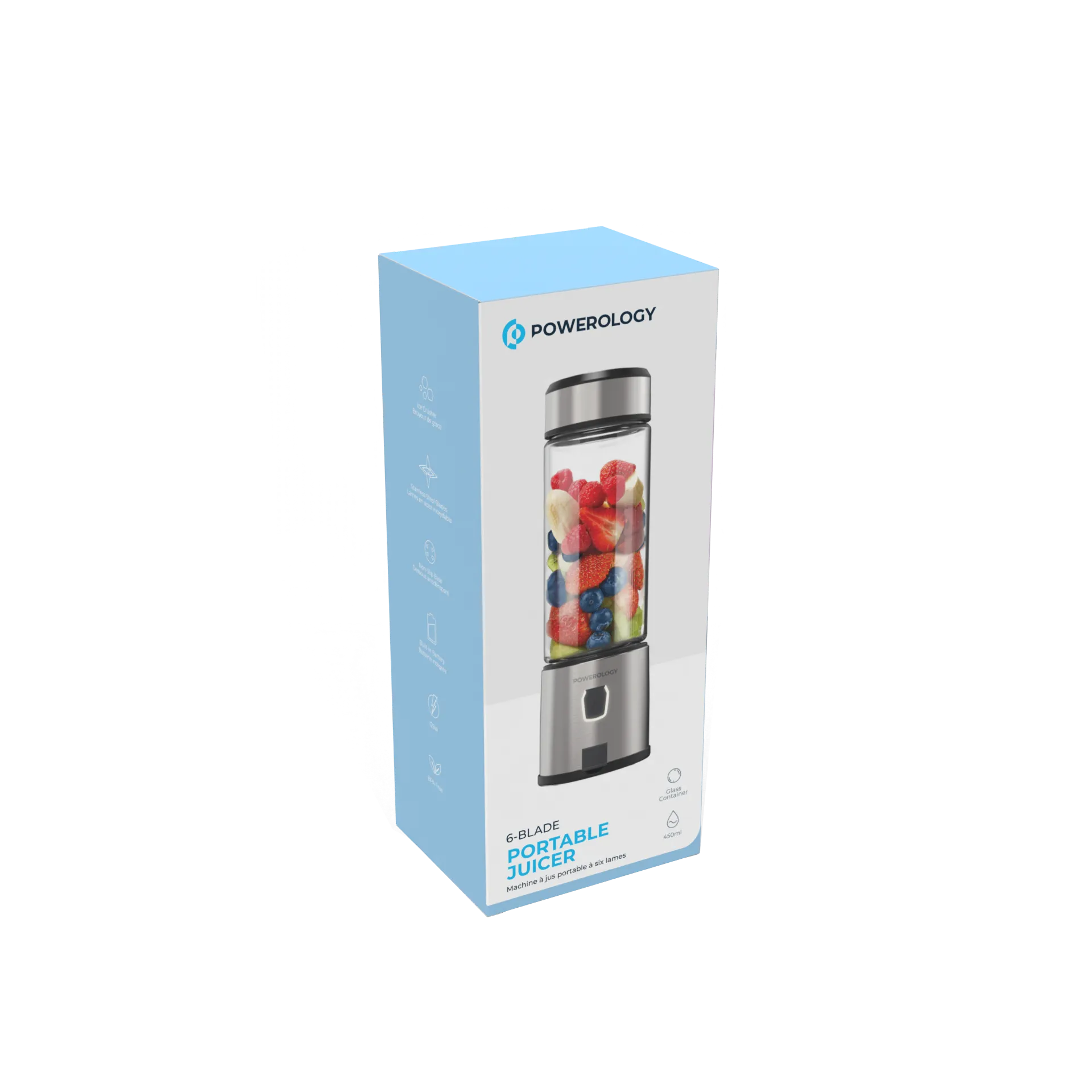 Powerology 6-Blade Portable Juicer is a light-weight kitchen gadget designed to consume healthy, fresh beverages in just a snap. It is easy-to-carry due to compact design, aided by a re-chargeable 5000mAh built-in battery. It is powered by 126W motor with 16500 RPM, which makes 6 blades, rotate at extreme speed to ensure efficient blending and juicing. These stainless-steel blades feature the ability to crush ice, making it perfect for chilled beverages. With 450ml capacity, it provides you with enough volume to store nutrient-rich juices or smoothies on-the-go. The non-slip base adds stability during operation, while the BPA-free and glass construction satisfy health-considerate consumers. With its combination of power and safety, it offers a healthy lifestyle for those seeking fresh, homemade juices anywhere, anytime.