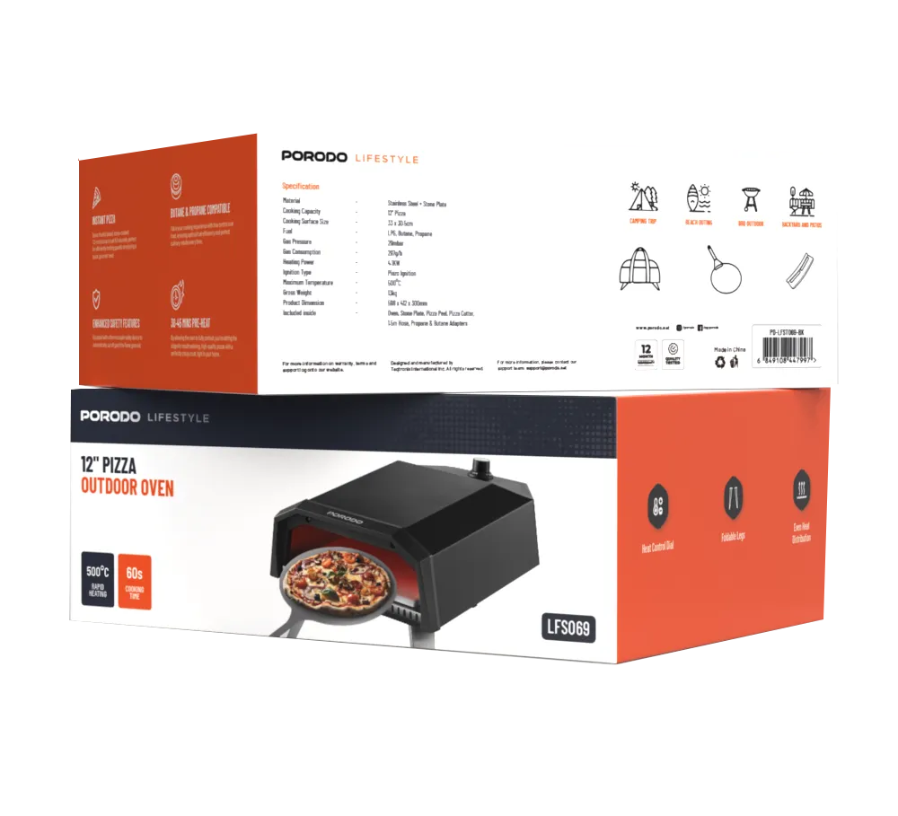 Bring the authentic taste of freshly baked pizza to any gathering with the Porodo Lifestyle Portable Pizza Oven. Built from premium stainless steel, this oven delivers even heat distribution for perfectly crispy crusts and deliciously cooked toppings every time. Its compact, portable design with foldable legs makes it easy to set up and transport—ideal for backyards, picnics, camping trips, or outdoor parties.