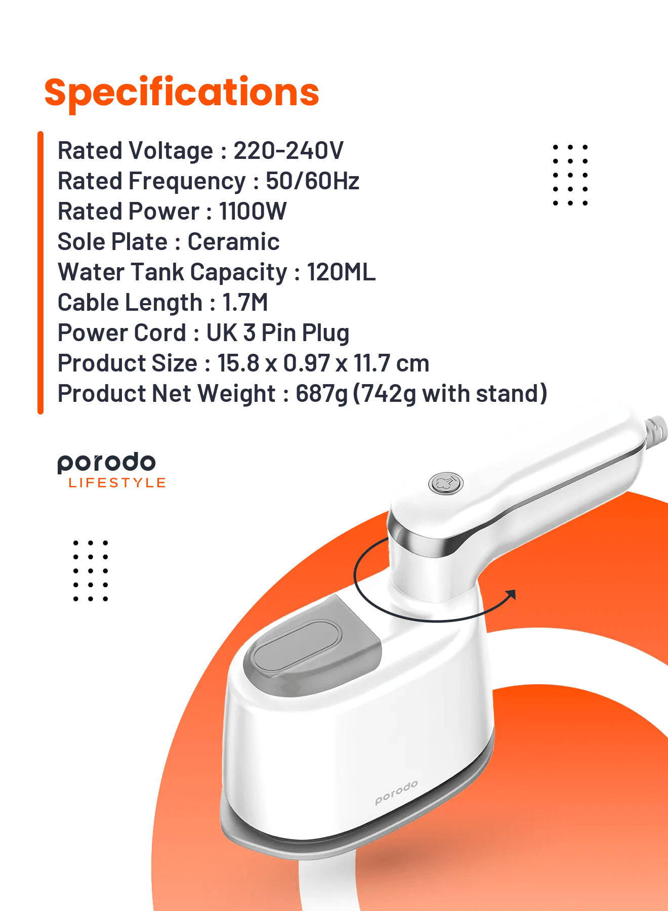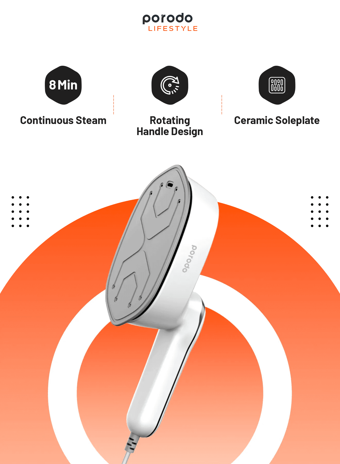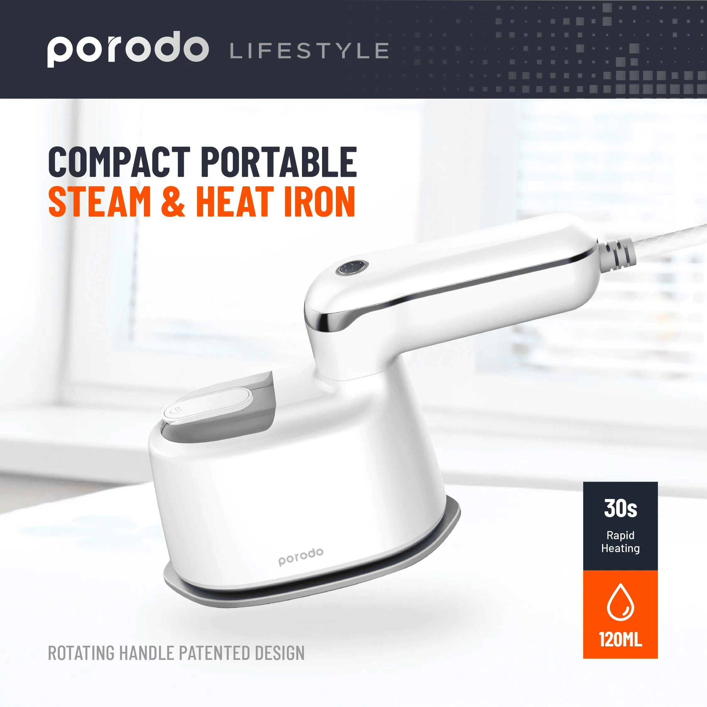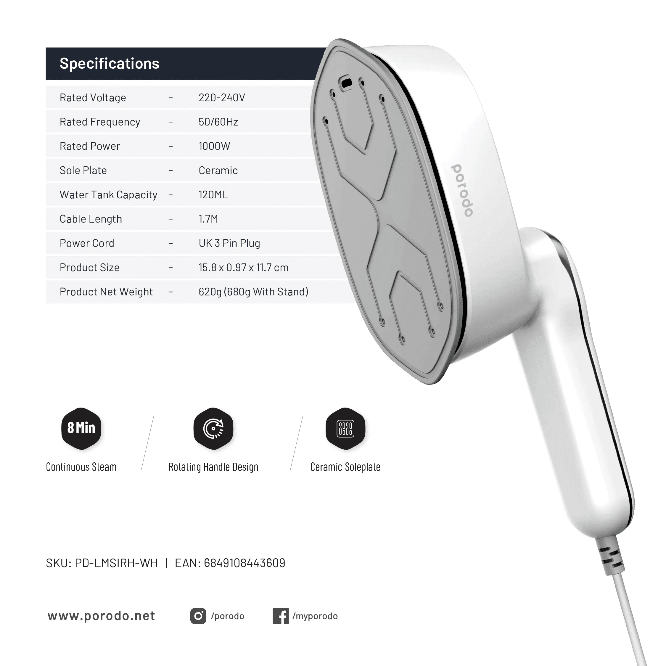مكواة بخار صغيرة من بورودو لايف ستايل، 1000 واط، المملكة المتحدة، بمقبض دوار