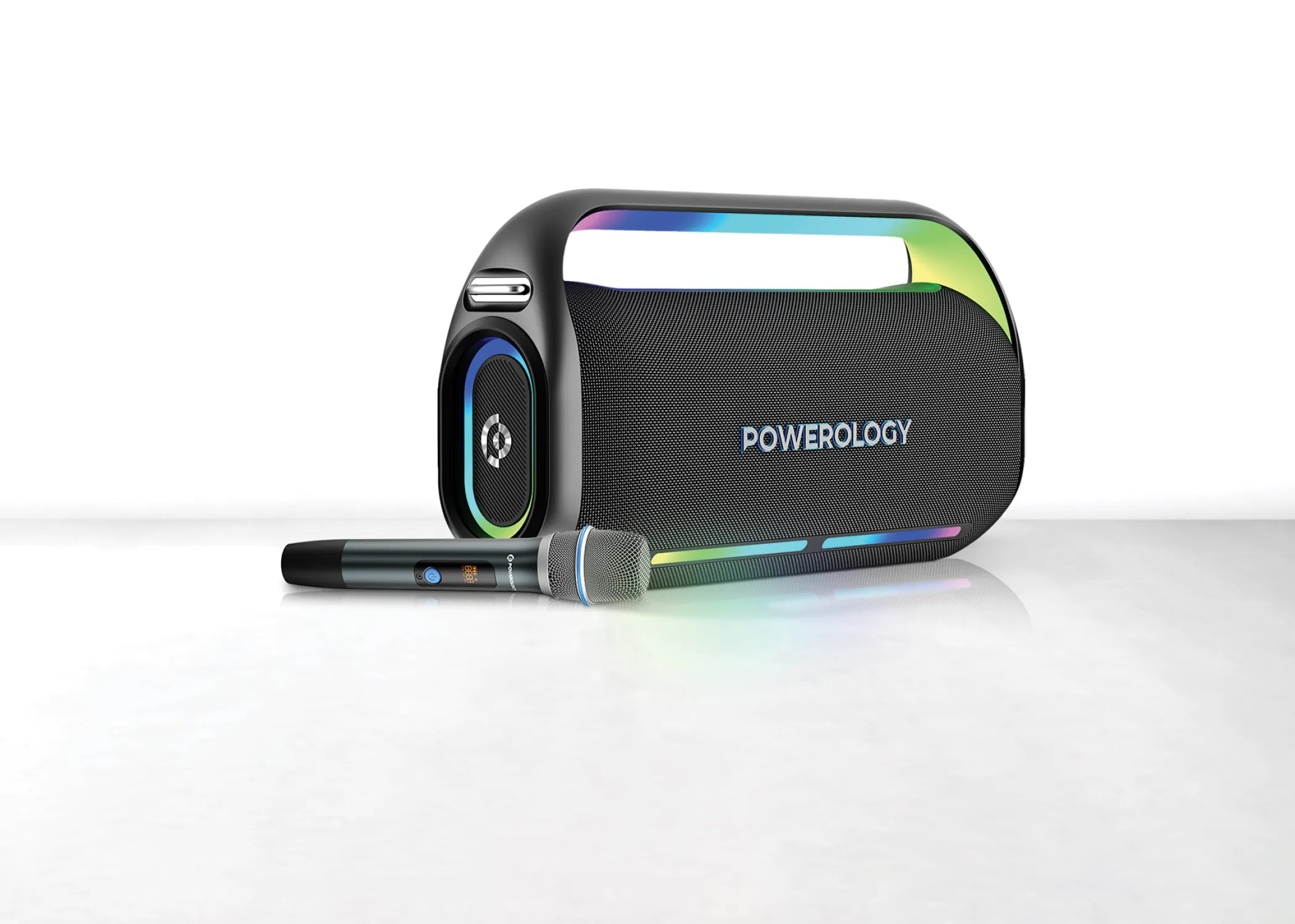 Unleash powerful sound with vibrant energy everywhere with the Powerology Deep Bass Party Speaker. Equipped with a great big 18000mAh battery, this speaker provides up to 12 continuous hours of music-laden parties, outdoor activities, or simple get-togethers. With the output power at 150 W (200W peak), outstanding audio performance assures deep bass along with crystal highs through its dual 103mm woolies and dual 57mm tweeters. Equipped with Bluetooth V5.0+DSP, it realizes seamless connection, with over 10m of transmission range. Multiple interfaces for 3.5mm AUX, USB, and a Micro SD slot up to 256GB, a MIC input to support karaoke for much fun. Quick charging through the Type-C charging port for up to 7.5 hours is enough. Designed to be durable and fun, it comes with water resistance and an atmospheric light to raise the party mood. It can even double as a power bank for the ultimate companion in whatever situation.