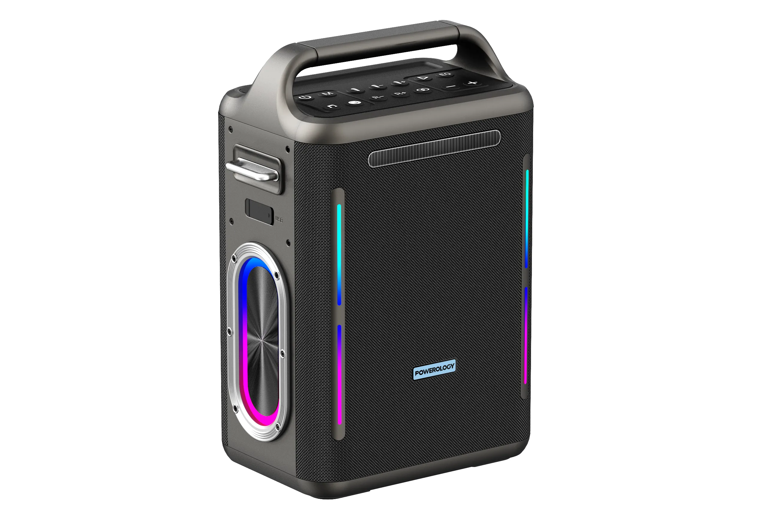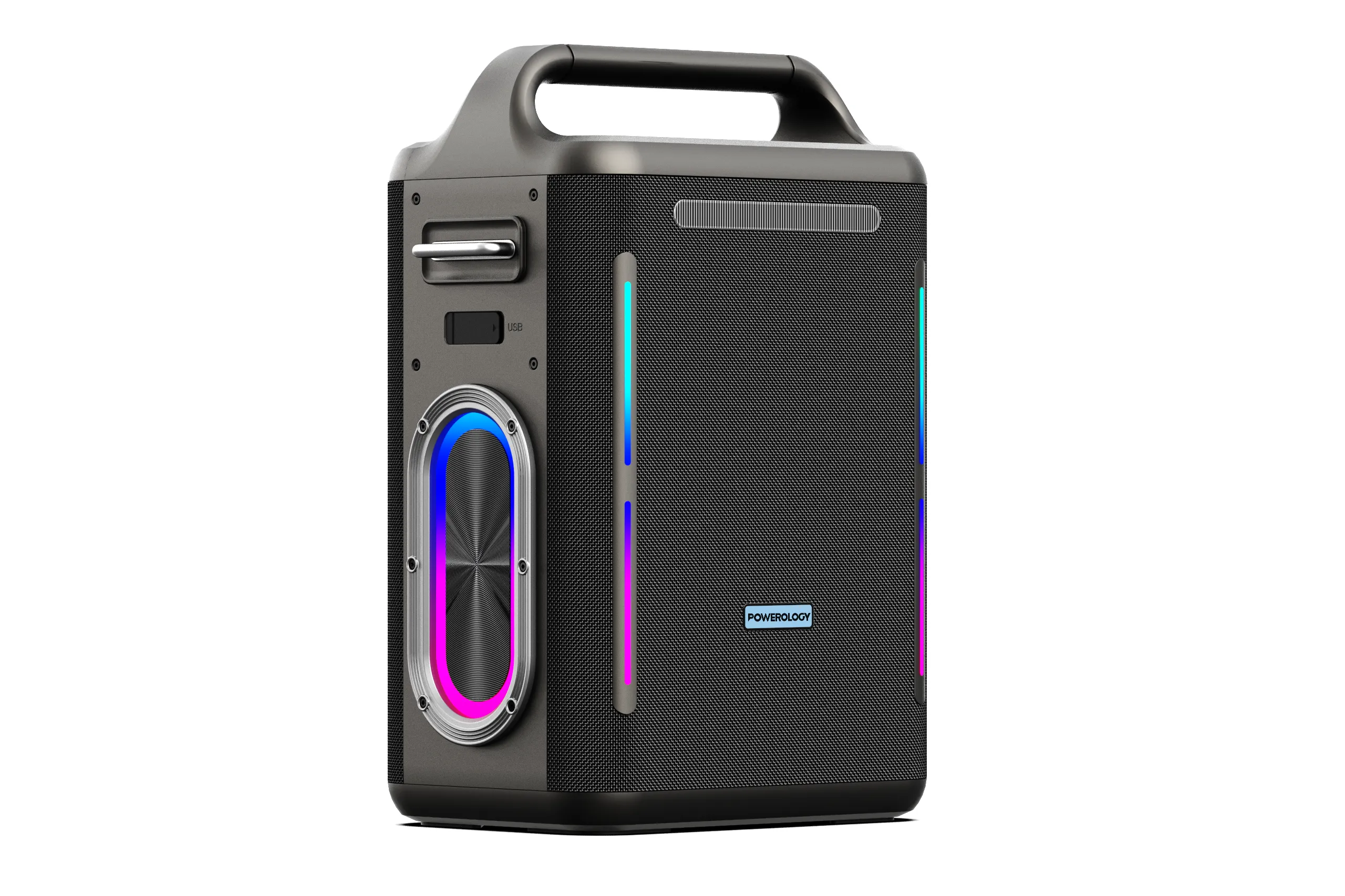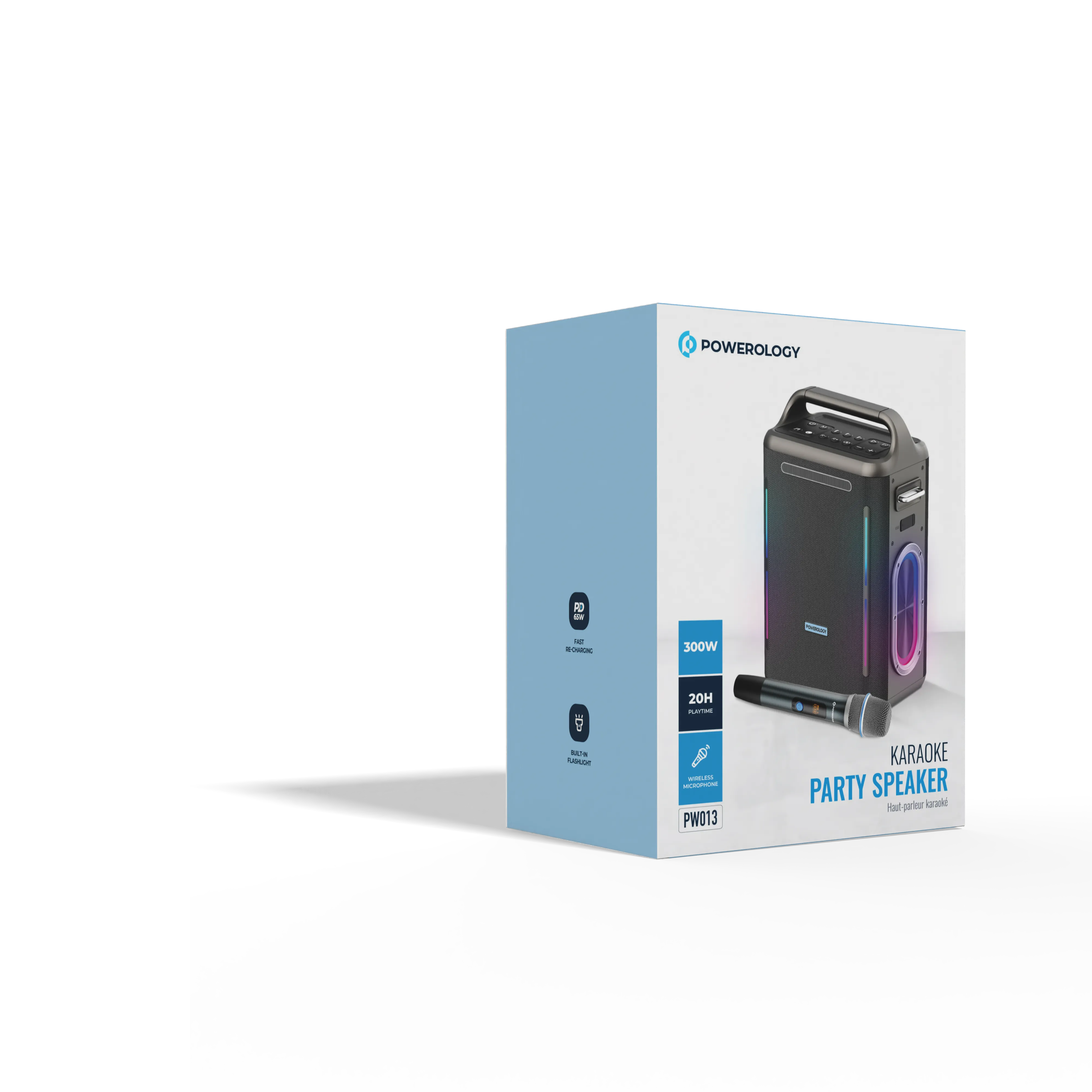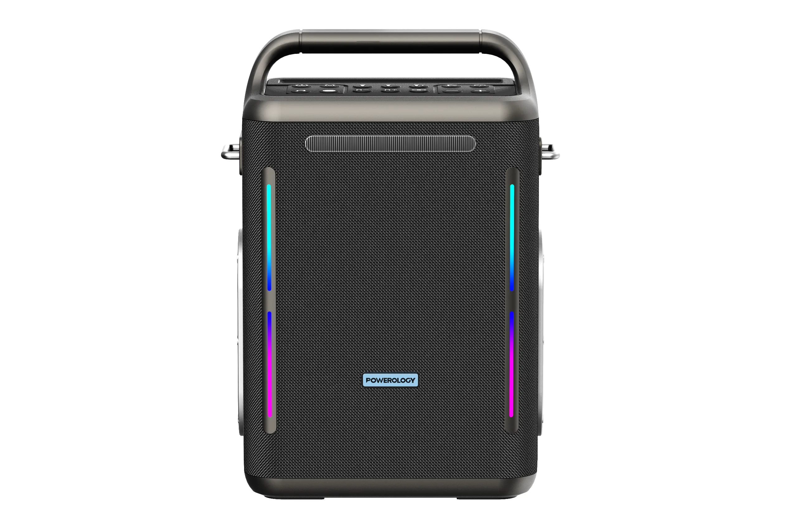 Elevate your gatherings and parties into a super-powered music and karaoke experience with the Powerology Karaoke Party Speaker. An exceptional sound system comes equipped with Bluetooth V5.3 pairing technology, and this speaker keeps connected within distances of over 10 meters or yards for excellent audio streaming stability without fail. With a powerful 250W RMS, 300W Max, this speaker emits crystal-clear sounds through 2×78mm tweeters and a 167mm woofer for a frequency response of 40Hz-18kHz. A built-in flashlight adds a party mood, while the included wireless microphone ensures your fun is part of the entire event. Powered by a large 30000mAh Li-ion battery, this speaker can play for up to 20 hours and keep the party night going. Recharge efficiently and fast with PD 65W fast charging via the Type-C port, and it is fully rechargeable in just 3-4 hours. Portable, powerful, and party-ready, this is your ultimate entertainment companion: the Powerology Karaoke Party Speaker.