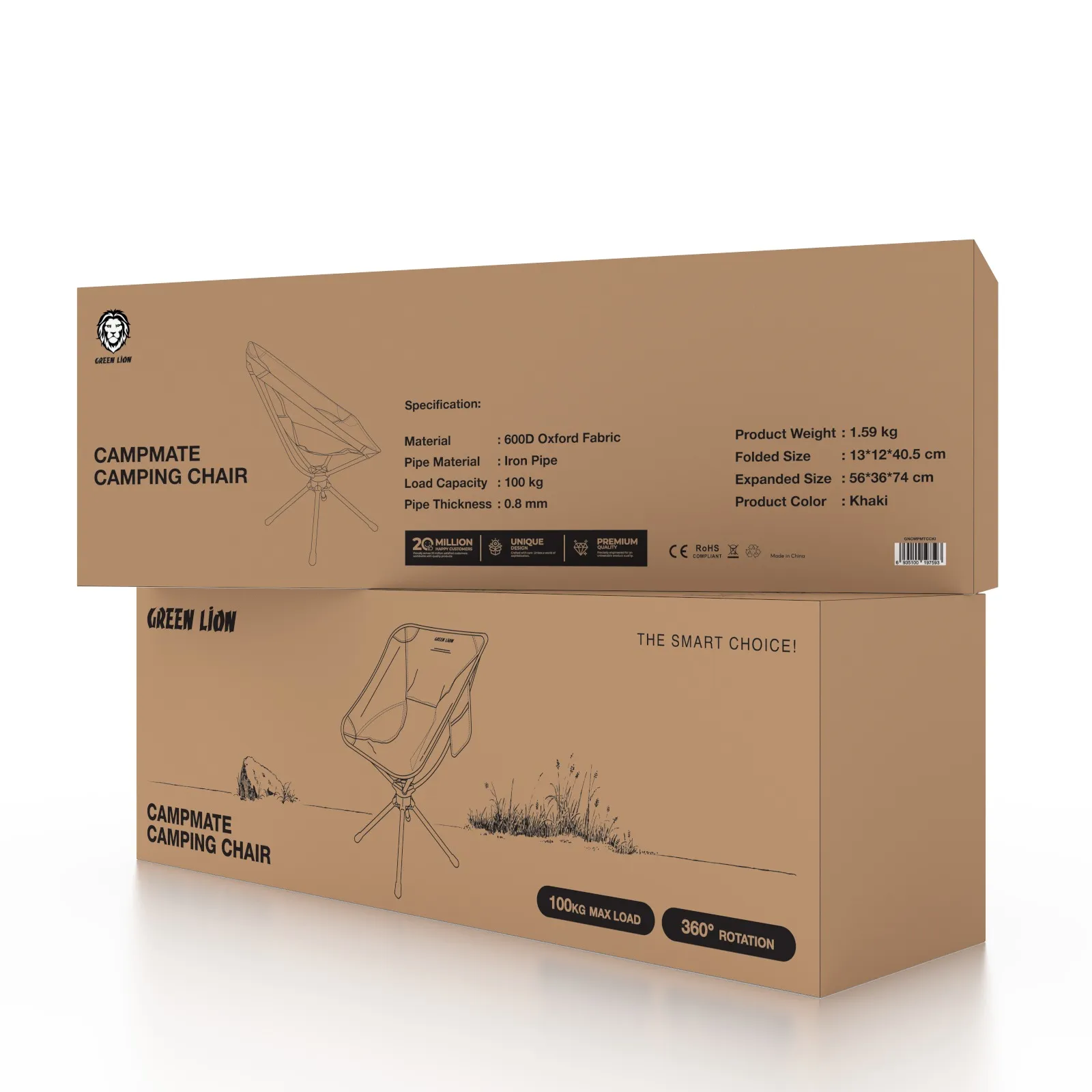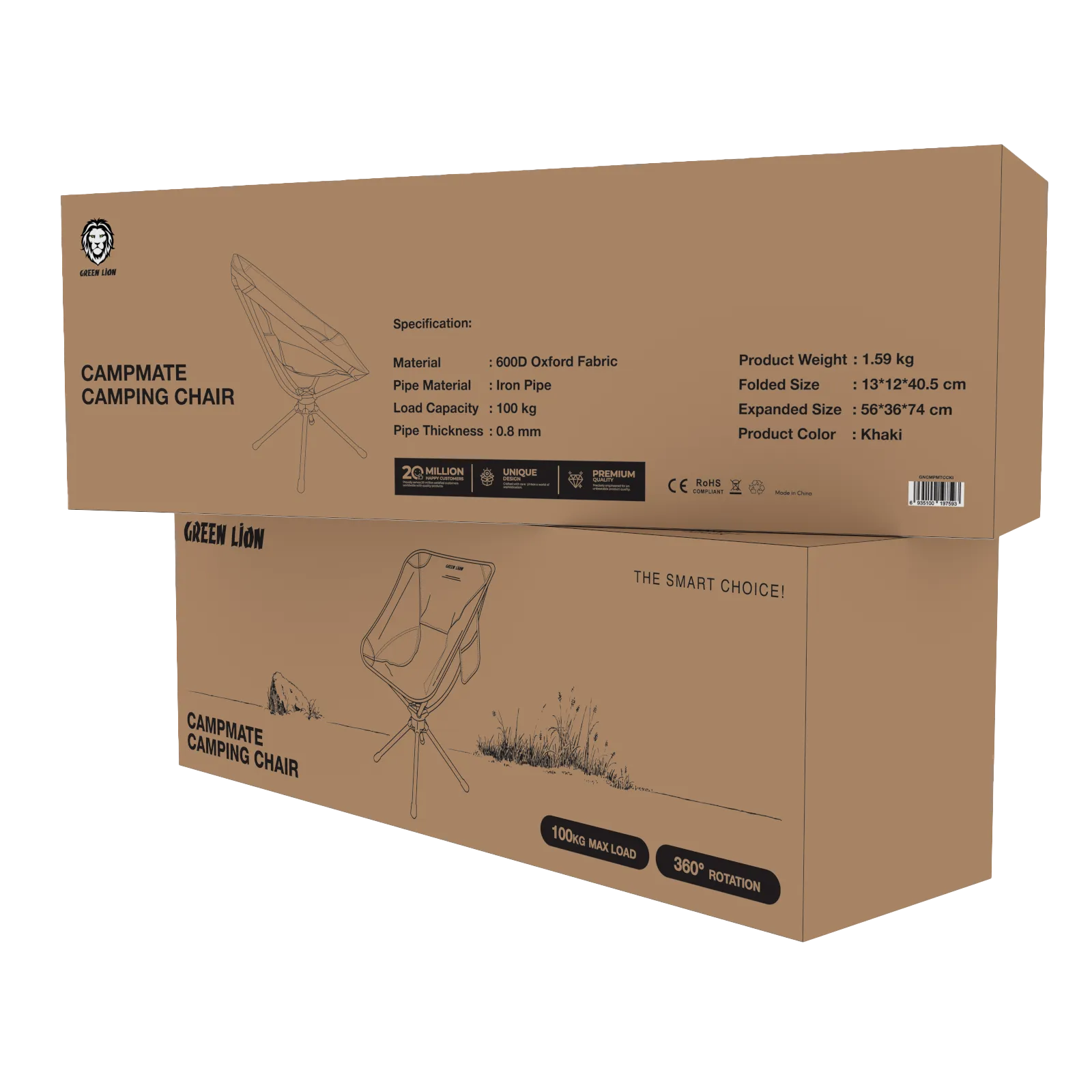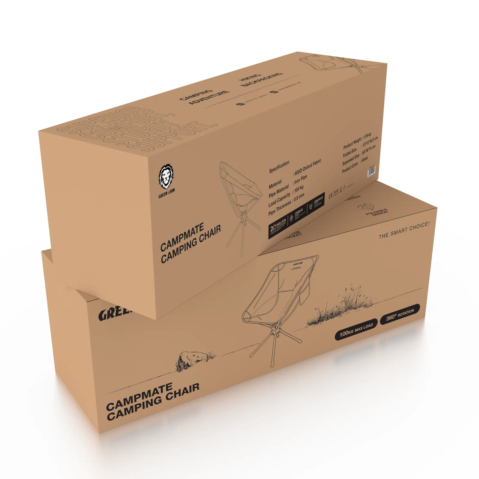 Relax outdoors with the GREEN LION CampMate Camping Chair in khaki. Perfect for camping, hiking, picnics, and outdoor events, this chair features a foldable, lightweight design for easy transport and storage. Made from durable materials, it offers stable and comfortable seating wherever you go. Its portability and convenience make it an ideal choice for outdoor enthusiasts and travelers.