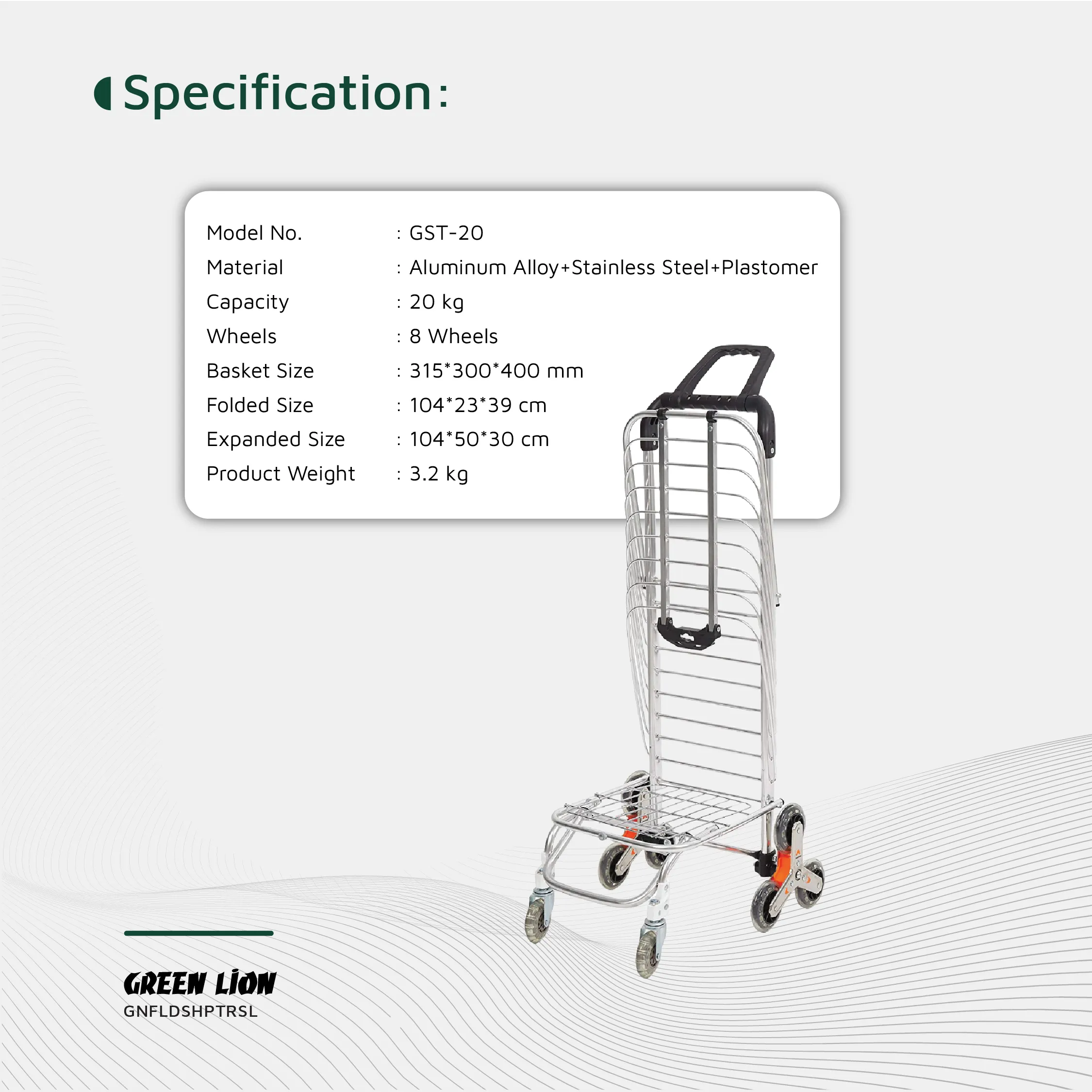 The Green Lion Foldable Shopping Trolley – Silver is a lightweight yet sturdy companion for all your shopping needs. Crafted with a durable aluminum alloy frame and a foldable design, this trolley offers easy portability and space-saving storage. Its smooth-rolling wheels ensure effortless movement across different surfaces, while the ergonomic handle provides a comfortable grip. Perfect for groceries, travel, or daily errands, this trolley combines practicality and modern style in a sleek silver finish.