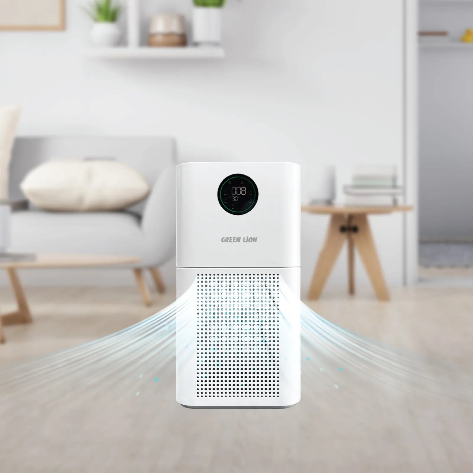 Enjoy clean and healthy indoor air with the GREEN LION Intelligent Air Purifier in sleek white. Designed with advanced filtration technology, it effectively removes dust, pollen, smoke, odors, and other airborne particles. Ideal for homes, offices, and personal spaces, this purifier features smart sensors and easy-to-use controls for automatic adjustment based on air quality. Compact, quiet, and energy-efficient, it ensures a fresher, safer, and more comfortable environment wherever it’s placed.