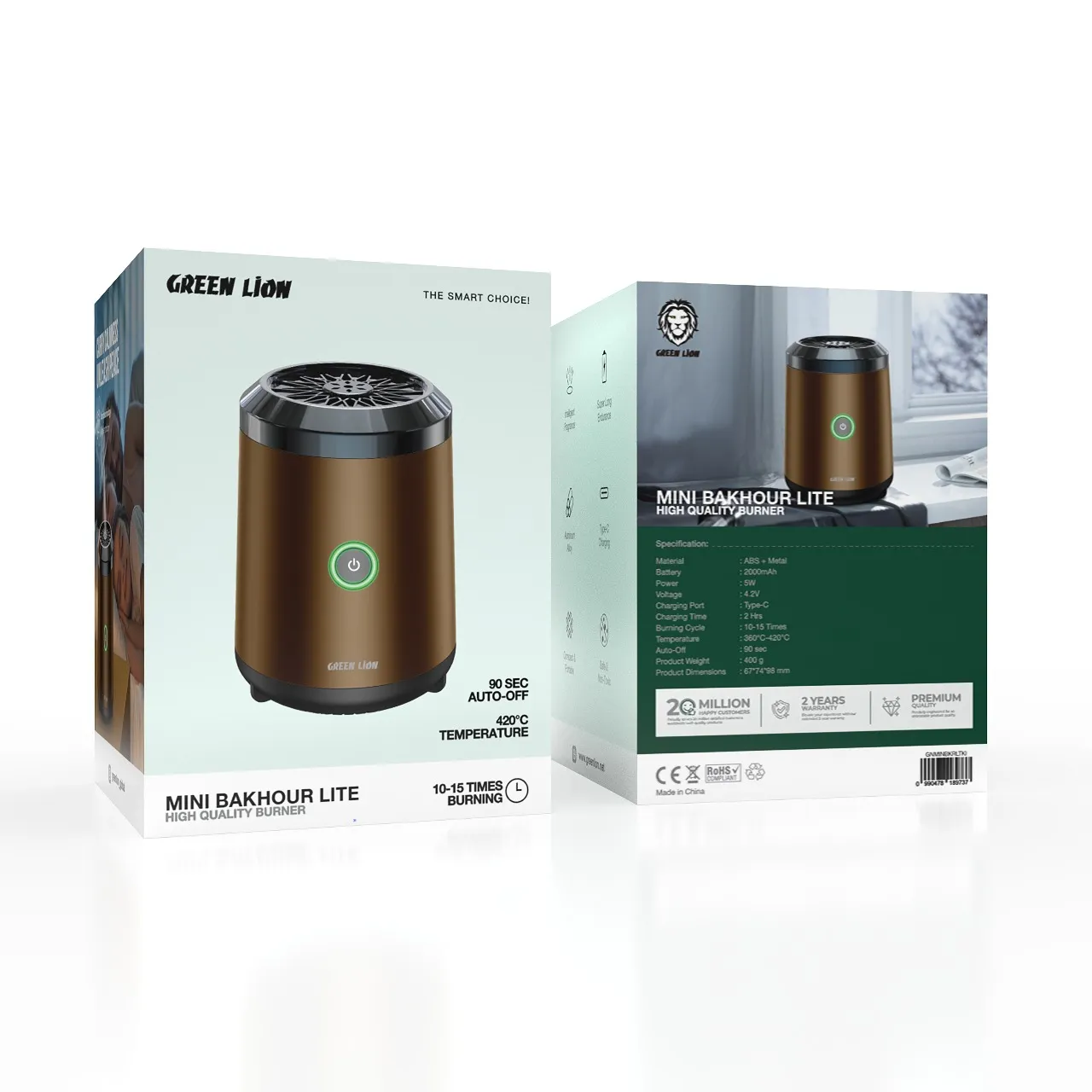 Enhance your space with the GREEN LION Mini Bakhour Lite Incense Burner in stylish khaki. Compact and elegant, this incense burner is perfect for home, office, or personal spaces, allowing you to enjoy the soothing aroma of bakhour or other incense effortlessly. Its portable design and easy-to-use functionality make it ideal for daily use or gifting. Bring warmth, fragrance, and a touch of tradition to any environment with this beautifully designed burner.
