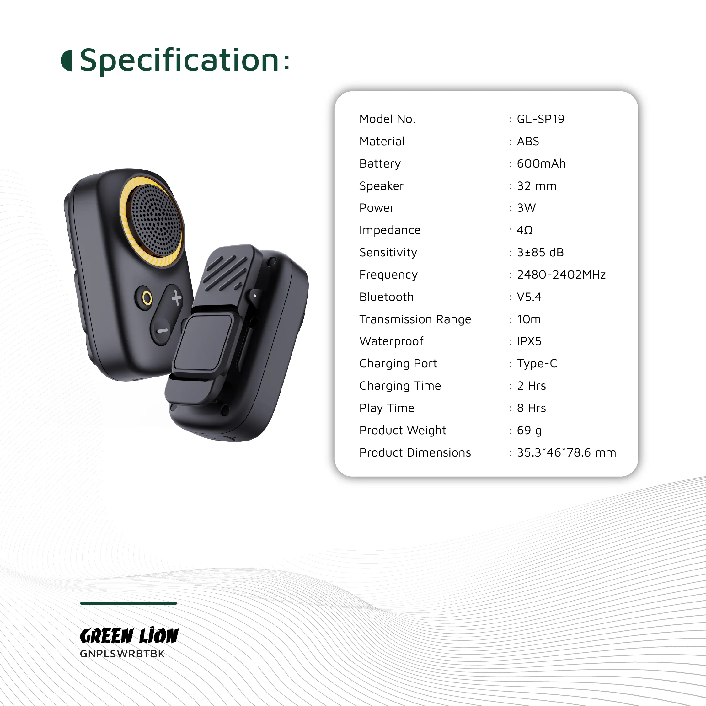 GREEN LION PULSE WEAR WEARABLE BT SPEAKER - BLACK