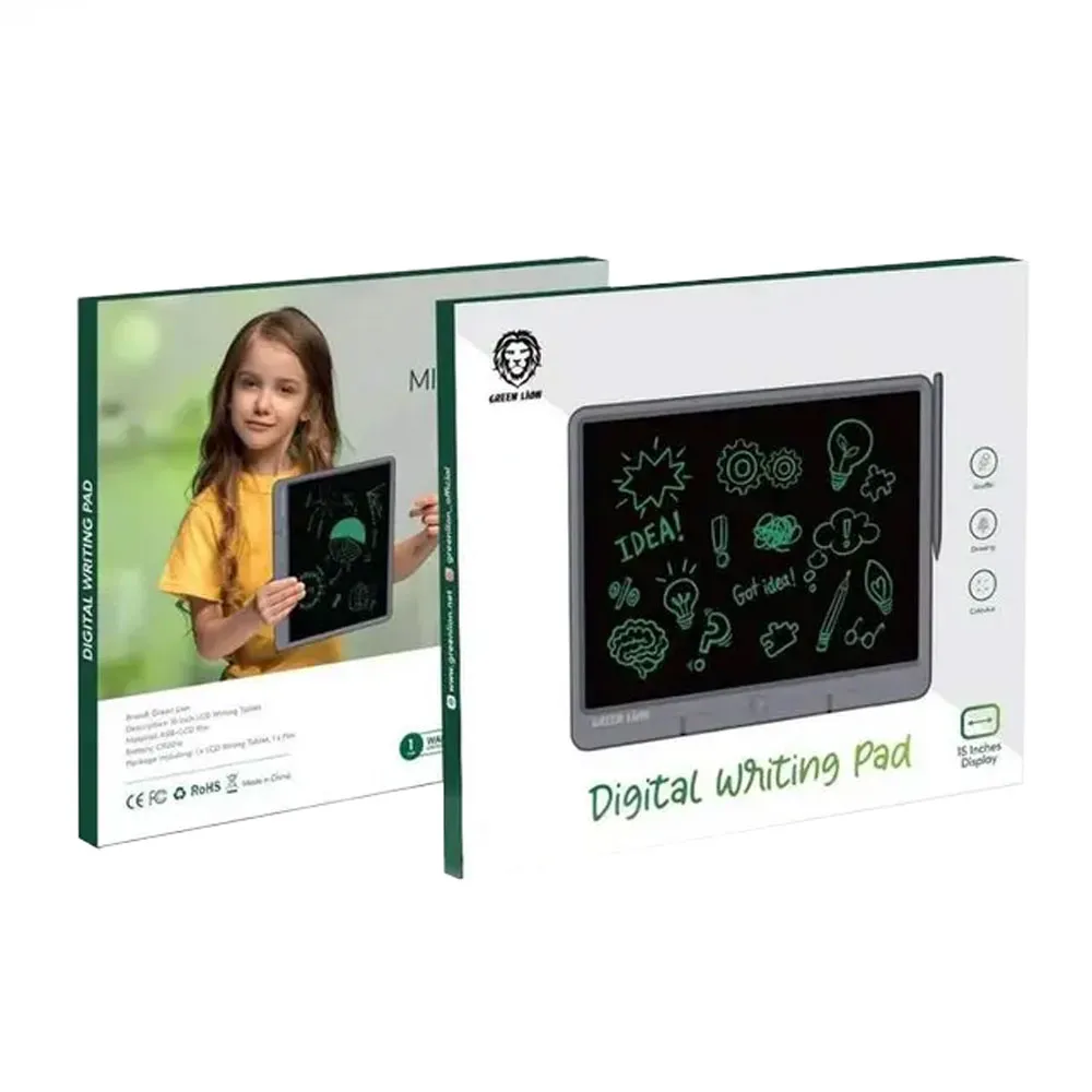 The Green Lion LCD Digital Writing Pad 15" – Gray is the perfect eco-friendly solution for note-taking, doodling, and daily reminders. Featuring a large 15-inch LCD screen, it delivers a paper-like writing experience with smooth, pressure-sensitive input for clear and crisp strokes. With its one-click erase and screen lock functions, you can easily save or delete your work. Lightweight and ultra-slim, this writing pad is ideal for students, professionals, and kids who want to reduce paper usage while enjoying unlimited creativity.