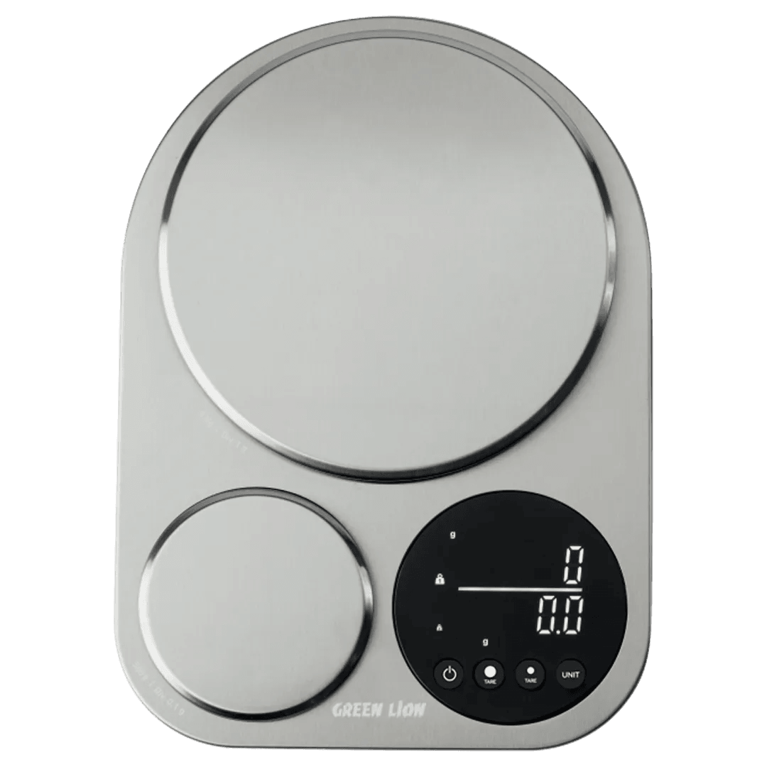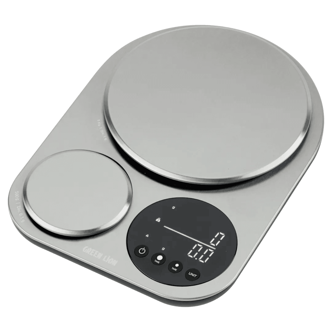 The Green Lion Dual Kitchen Scale is an accurate and multi-purpose solution for weighing needs that meets all your kitchen needs. Constructed from heavy Stainless Steel 201, the scale combines sleek designs with strength in functionality. There are two surfaces for large and small sizes with a maximum area capacity of 5kg (11 lbs) and a division of 1g, perfect for bulk food supplies. The small unit offers a precise capacity of 500g (17.64oz) with 0.1g graduation, which is ideal for weighing small quantities like herbs or spices. 3 AAA batteries power the scale and offer convenient additions like auto shut-off after 120 seconds, net weight function with tare, and low battery and overload warning. The clear, simple-to-read digital screen allows easy reading, which makes the Green Lion Dual Kitchen Scale essential to every kitchen.