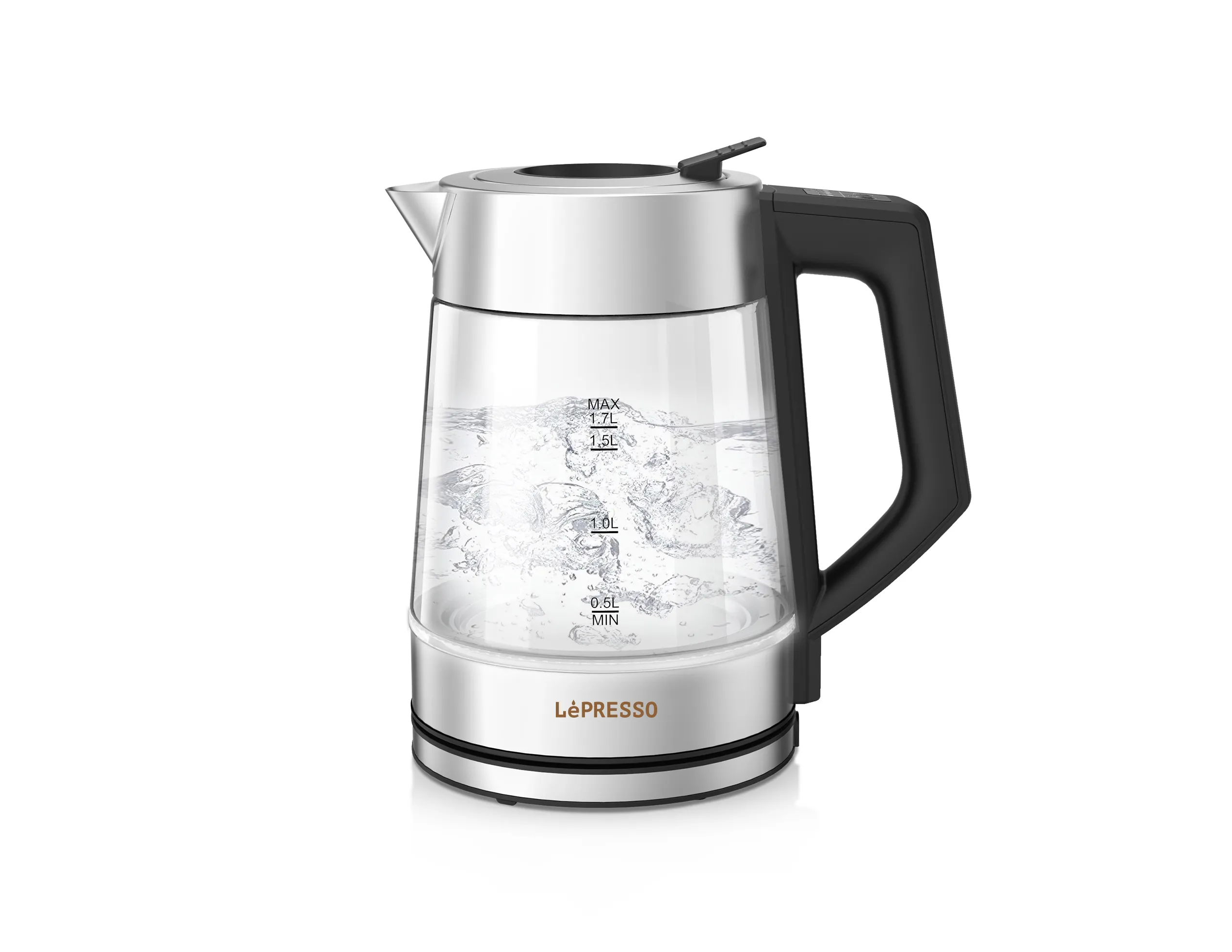 The LePresso Multi-Temperature Illuminated Glass Kettle is perfect for those who value precision and convenience in their daily routines. Its ergonomic handle provides a comfortable grip for easy pouring and handling. Powered by 1850-2200W, it quickly heats water, making it ideal for busy mornings or when hot water is needed in a hurry. The kettle features boil-dry protection that automatically shuts off the appliance if no water is inside, ensuring safety and preventing damage. With the keep-warm option, you can maintain your preferred water temperature for extended periods, making it perfect for enjoying multiple cups of tea or coffee throughout the day. The temperature control allows you to choose from 50°C to 100°C, providing the ideal temperature for a variety of teas, coffees, and other beverages. Its intuitive control panel makes adjusting settings and monitoring the kettle’s status simple and easy. The kettle has a 1.7-liter capacity, suitable for both individual use and preparing larger quantities. It comes with a 3-pin UK plug for compatibility with standard outlets. Combining functionality and style, the LePresso Multi-Temperature Illuminated Glass Kettle enhances your beverage preparation experience with its thoughtful features and precise controls.