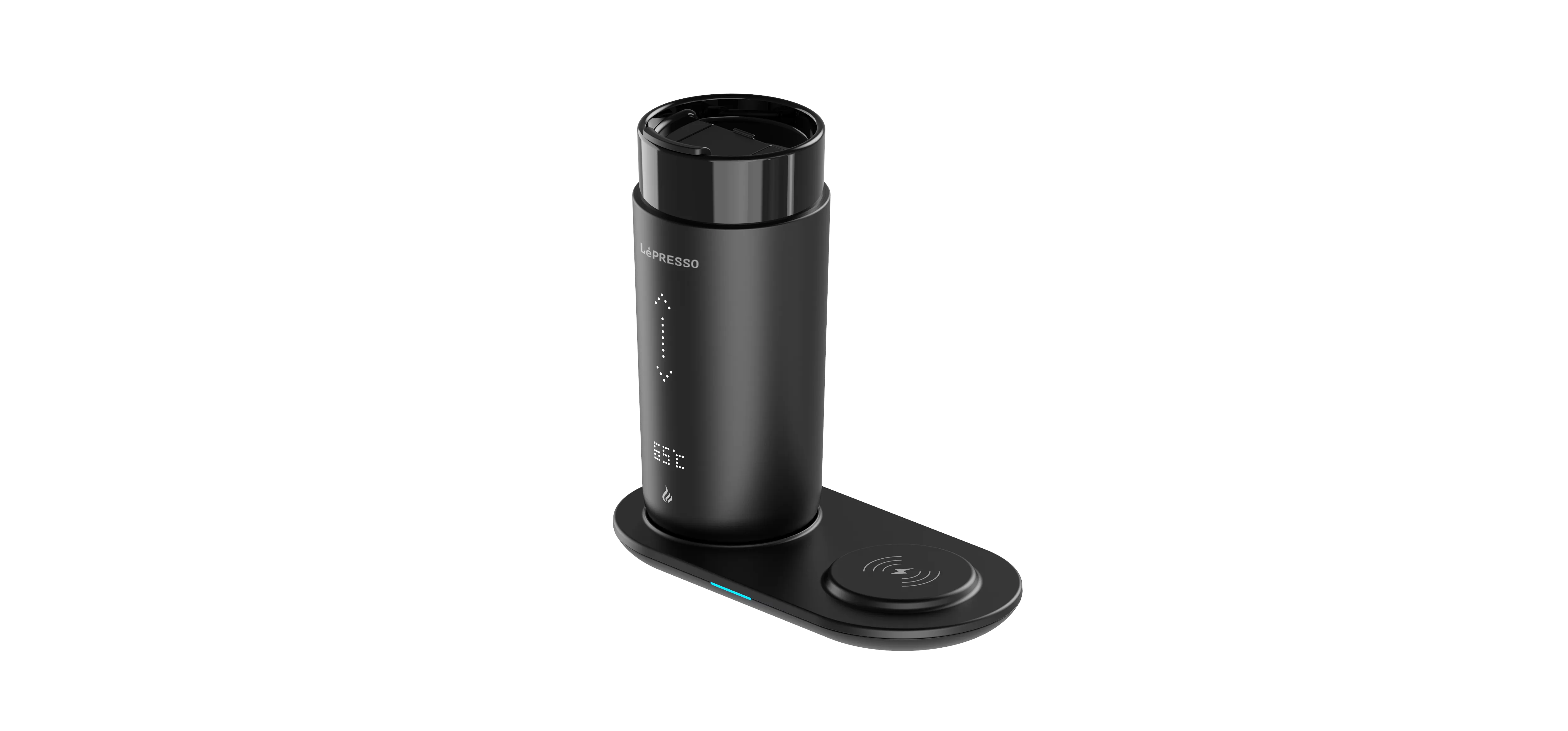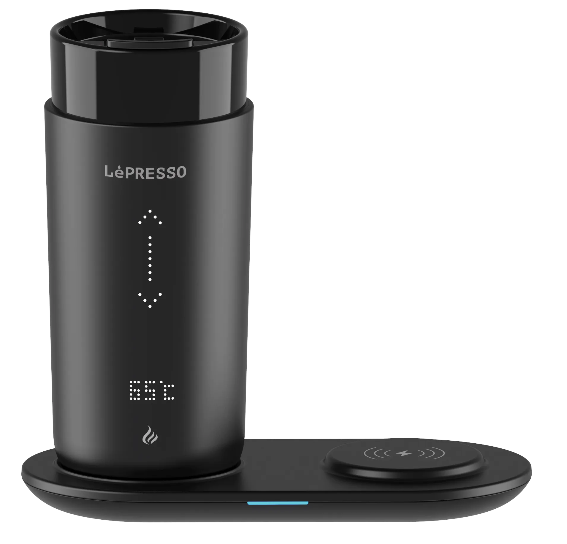LEPRESSO TRAVEL HEATED MUG 12OZ WITH WIRELESS CHARGING PAD - BLACK