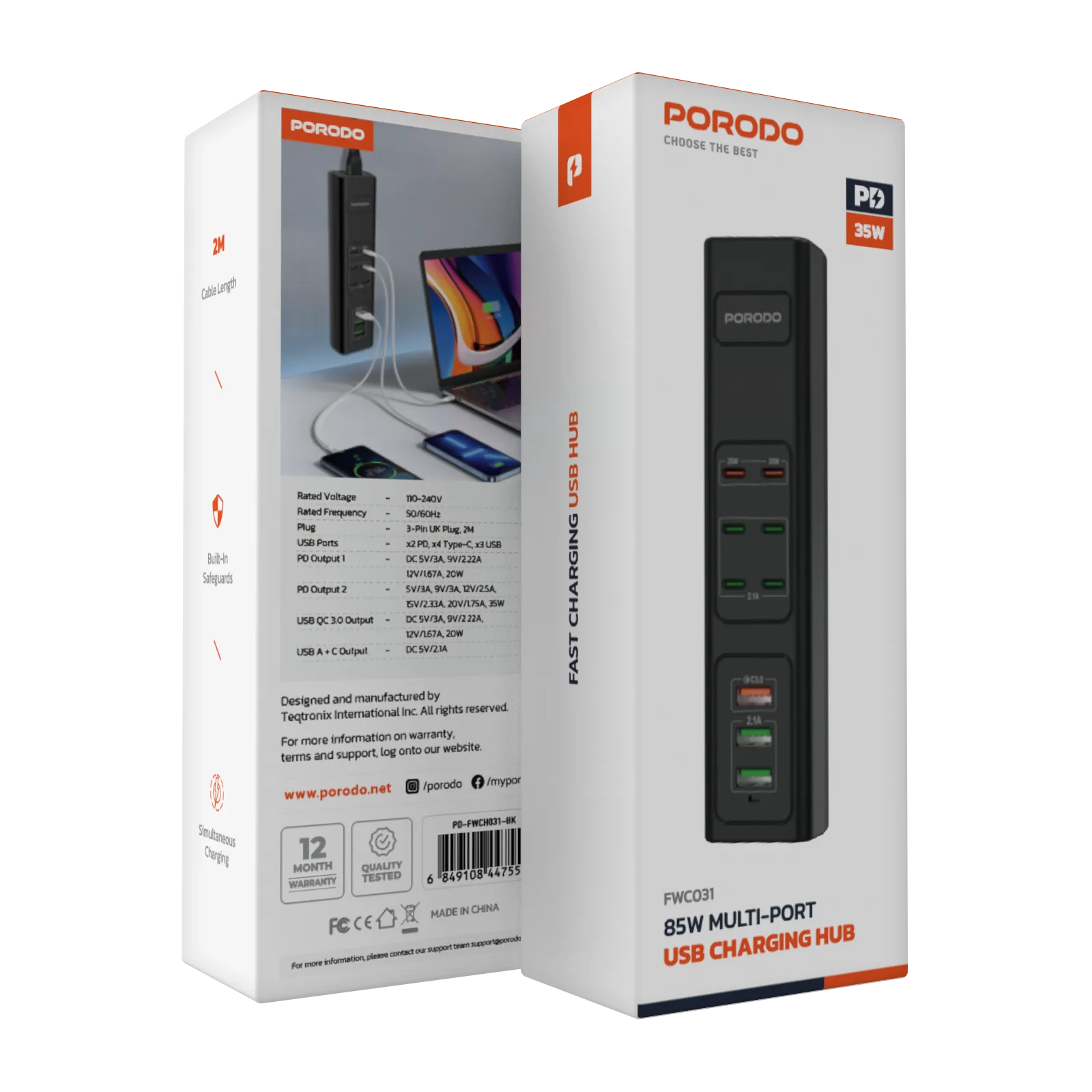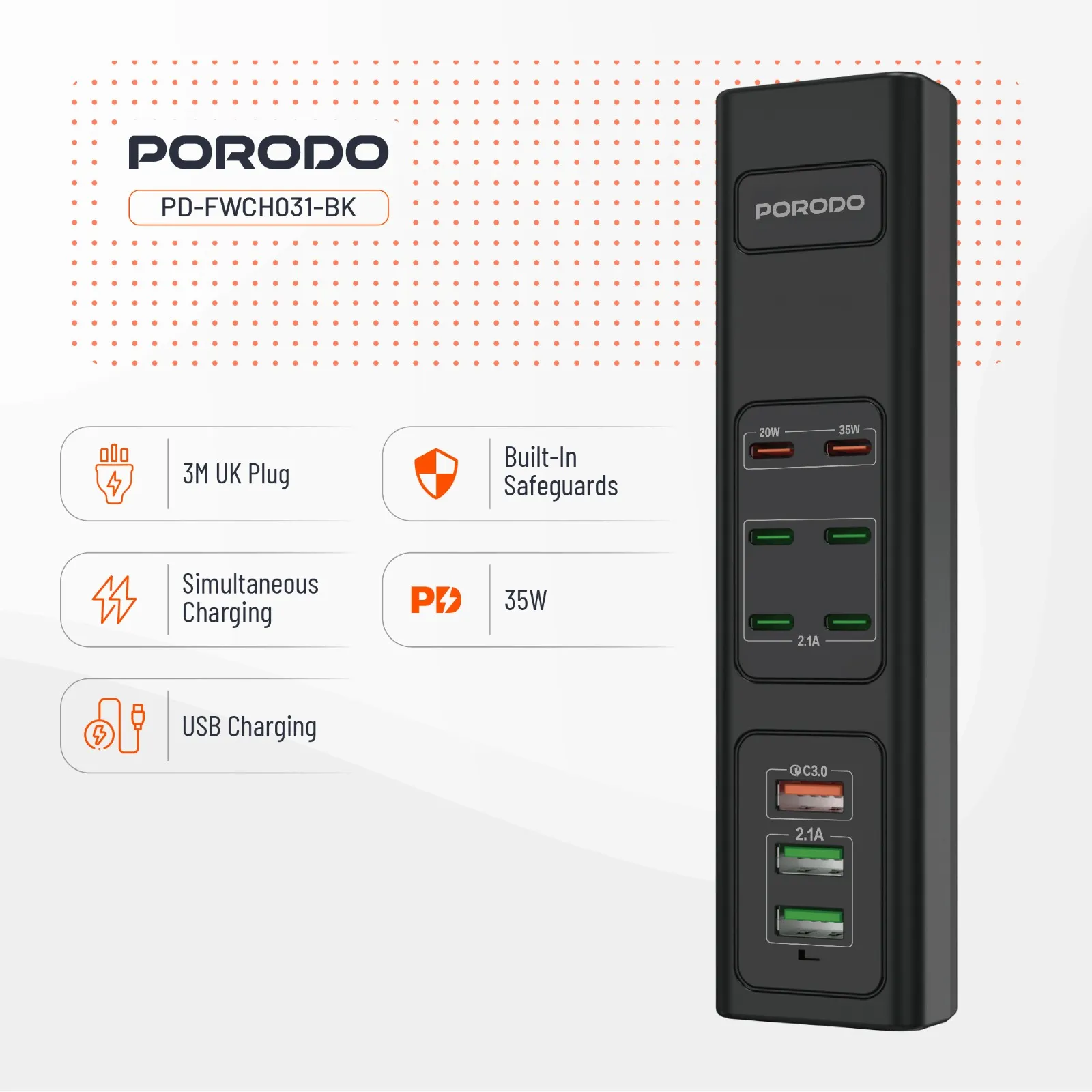 Power all your devices at once with the Porodo 85W X6 PD X3 USB Fast Charging Strip.
