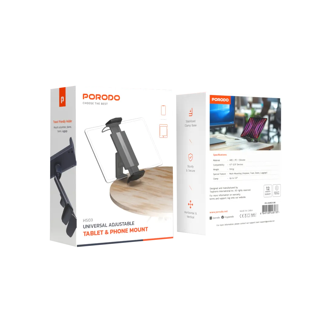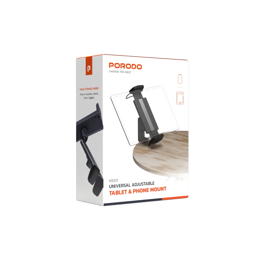 The Porodo Universal Adjustable 7" to 14.6" iPad/Tablet Stand – Black offers a sleek and versatile solution for securely holding a wide range of tablets. Designed to fit devices from 7 inches up to 14.6 inches, this stand is perfect for iPads, Samsung Galaxy Tabs, and other large tablets. Its fully adjustable height and angle allow for comfortable viewing during video calls, online classes, gaming, or streaming. Built with a sturdy, anti-slip base and a modern black finish, it provides exceptional stability and style for both home and office setups.