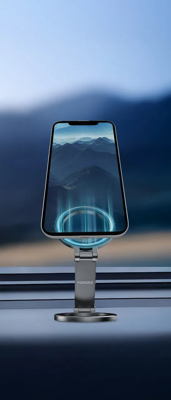 The Porodo 360° Foldable Dual Pilot Disks N52 MagSafe Car Mount – Black delivers powerful magnetic stability and full-angle adjustability for a secure and convenient driving experience. Featuring dual N52 pilot disk magnets, it ensures an ultra-strong MagSafe grip for iPhones, keeping your device perfectly aligned even on bumpy roads. Its 360° rotating head allows flexible positioning—portrait, landscape, or any angle—while the foldable design makes it compact and easy to store when not in use. Designed for modern drivers, this mount combines durability, premium materials, and seamless compatibility for effortless hands-free navigation and charging.