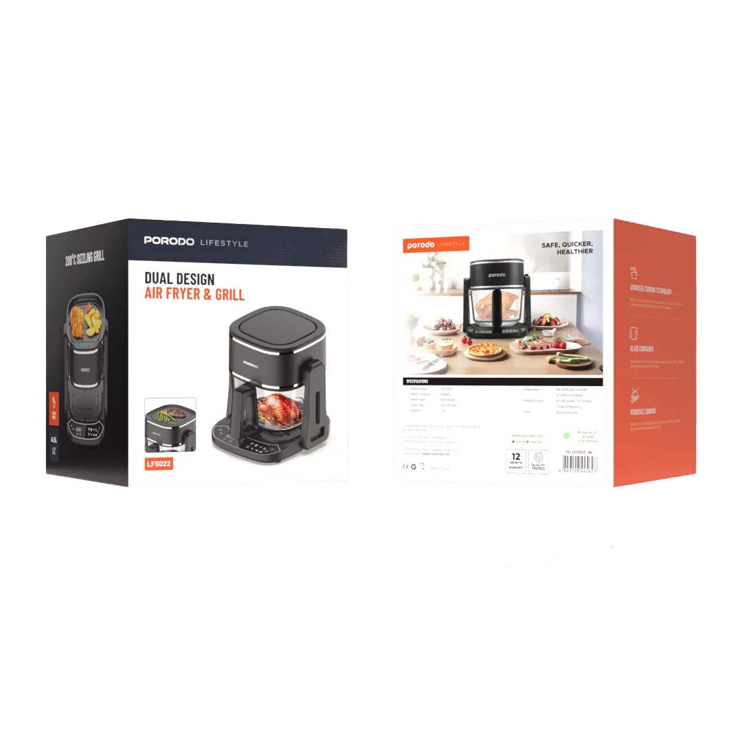 Porodo Lifestyle 2-in-1 Glass Air Fryer – Black