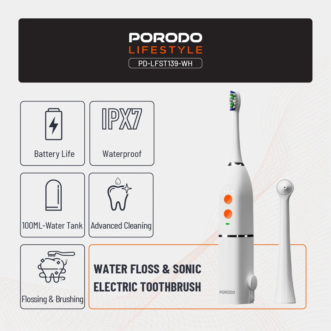 Here’s a complete e-commerce listing package for PORODO LIFESTYLE 1000mAh IPX7 Electric Toothbrush with Manual Mode & 110ml Water Tank: