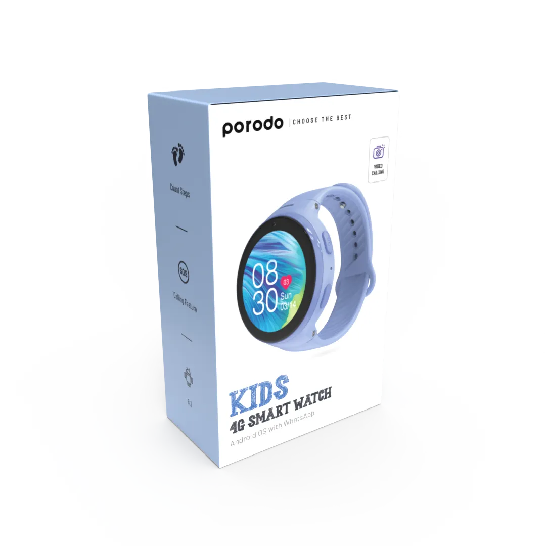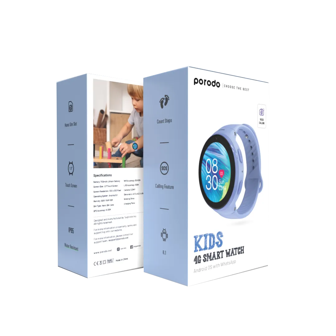The Porodo 4G Kids GPS Smart Watch with JuniCare App – Blue is a feature-packed smartwatch designed to keep kids safe and connected while giving parents peace of mind. With 4G connectivity, real-time GPS tracking, and two-way calling, parents can easily monitor their child’s location and stay in touch anytime. The dedicated JuniCare App provides instant alerts, safe-zone settings, and activity tracking for added security. Built with a durable, kid-friendly design, the watch also includes a high-resolution touchscreen, camera, SOS emergency button, and long-lasting battery—making it the perfect companion for everyday adventures.
