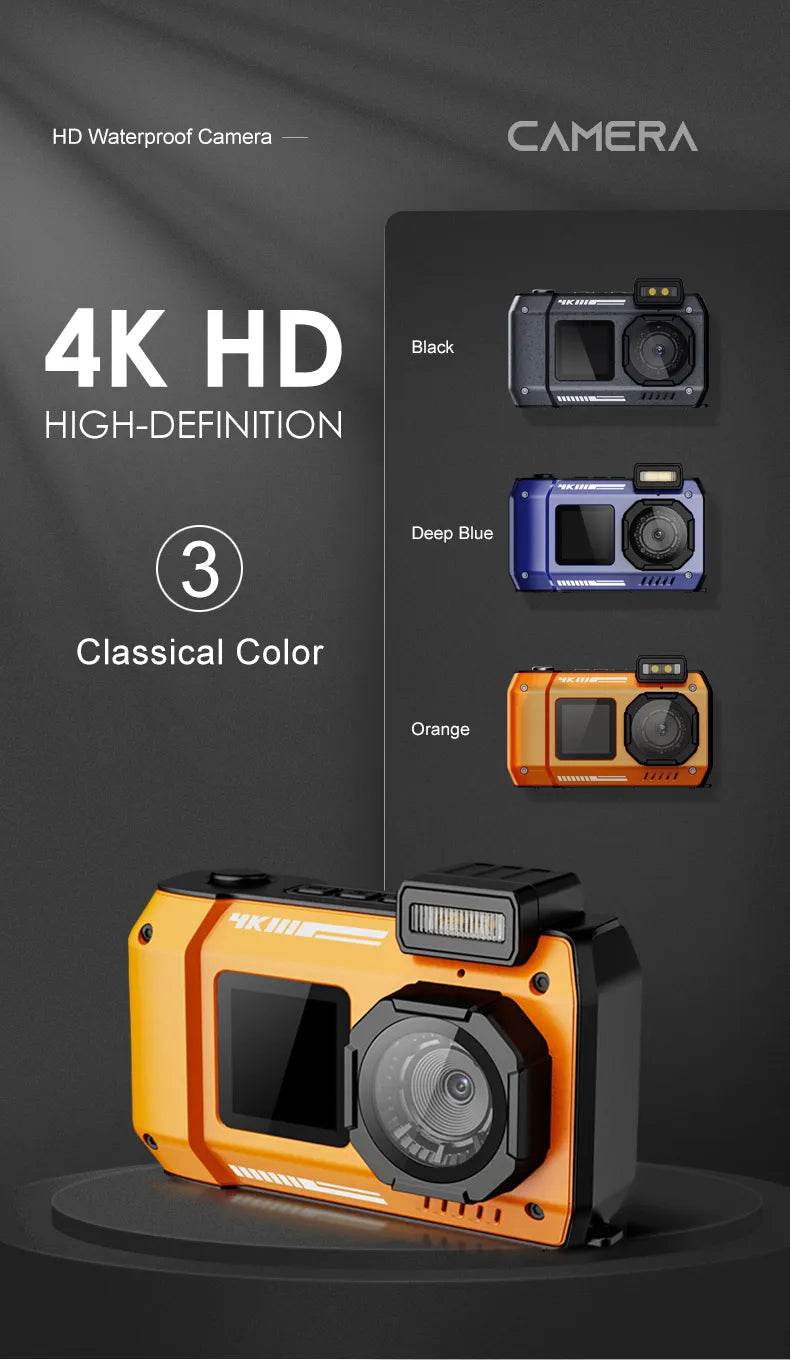 Capture memorable moments in any environment with the Porodo Waterproof Digital Camera. This camera features dual screens and 18x zoom, making it easy to frame and capture the perfect shot. You have a 2.88" 480x640 main screen and a secondary 1.44" 128x128 display to easily capture selfie images. Image resolution of 13MP (interpolated 48MP) and video resolution options of 720p, 1080p, 2.7K, and 4K make it possible to experience the best detailed frames ever. Whether you're shooting stills or recording action packed footage, the Porodo Waterproof Digital Camera delivers eyes catching results. As for battery and working time, it's powered by a 2500mAh, 3.7V battery, offering 2 to 3 hours of photo capture and 3 hours of video recording (depending on resolution). Recharge in just 3 hours, so you're always ready to capture life's adventures. With its waterproof design and advanced features, the Porodo Waterproof Digital Camera is the perfect companion for capturing memories in any setting.