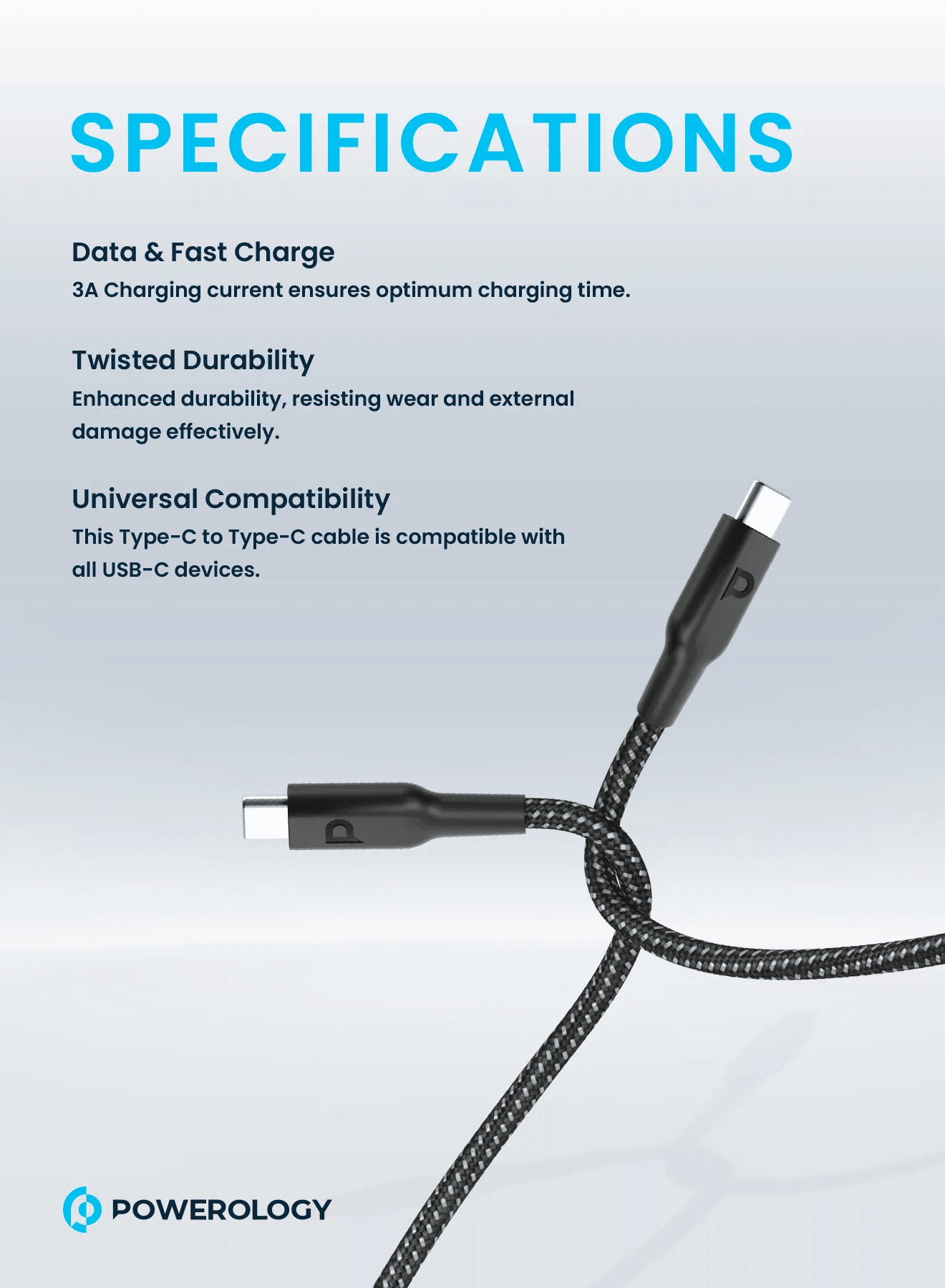 Introducing the Powerology Braided USB-C to USB-C Data & Fast Charge Cable (30cm/0.98ft), your go-to option for quick data transmission... Read more