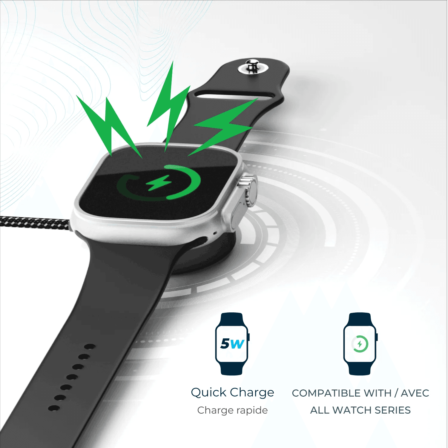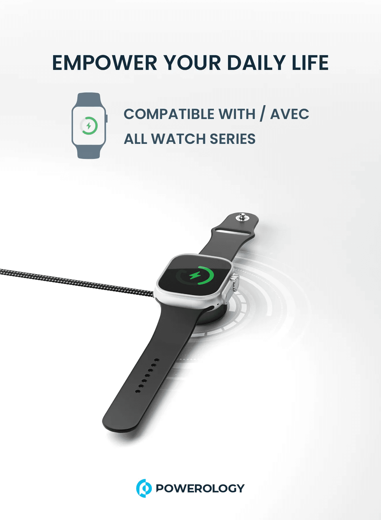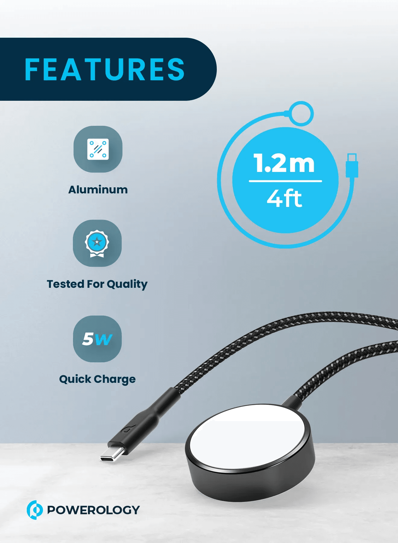 Elevate your Apple Watch charging experience with the Powerology Braided Apple Watch Charger. This premium charger features a durable braided design that not only adds style but also provides superior strength and flexibility. It is Made for Watch certified, ensuring a reliable and safe charging experience for your Apple Watch. The charger is compatible with all Apple Watch models and easily connects to any TYPE-C power source. With its tangle-free and compact design, you can conveniently take it anywhere you go. Whether at home, office, or on the go, the Powerology Braided Apple Watch Charger is the perfect companion to keep your Apple Watch powered up. Shop now at Powerology.me and enjoy hassle-free charging for your Apple Watch.