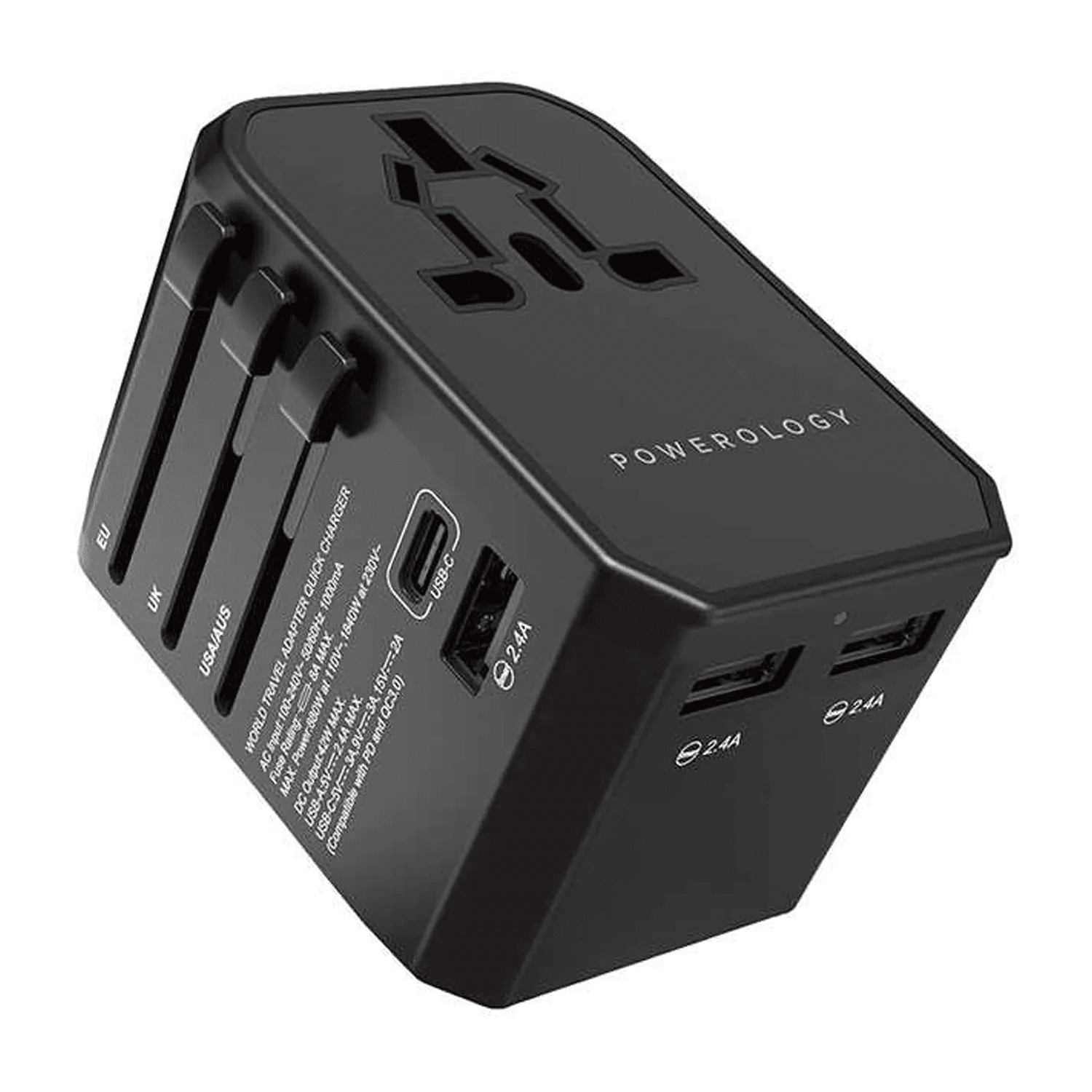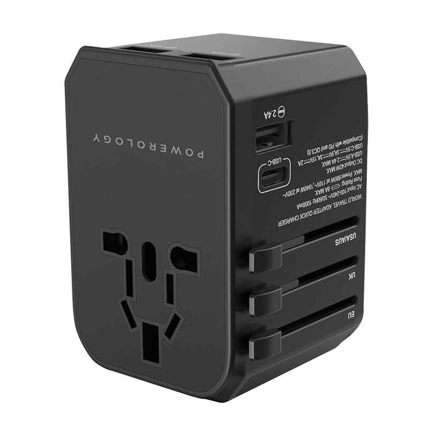 Powerology has produced its multiport adaptor with four international plugs as a compact all-in-one solution for travelers. Powerology Universal Multiport Travel Charger optimizes charging experience with dual fuse 8A and 3 PD45W Power Delivery Technology of USB-C and USB-A outputs which gives users the fast and parallel charging ability of multiple devices. With high-speed charging ability this adaptor can quickly power devices from 0% to 60% in just 35 minutes. The active protect charge management ensures added safety, guarding against overcharging and overheating. The space-saving travel-friendly design of this product makes it a must-have companion for frequent travelers. Whether charging laptops, smartphones, or other devices, the Multiport Travel Charger delivers a seamless charging experience, making it an essential travel companion for users seeking reliable and convenient power solutions worldwide.