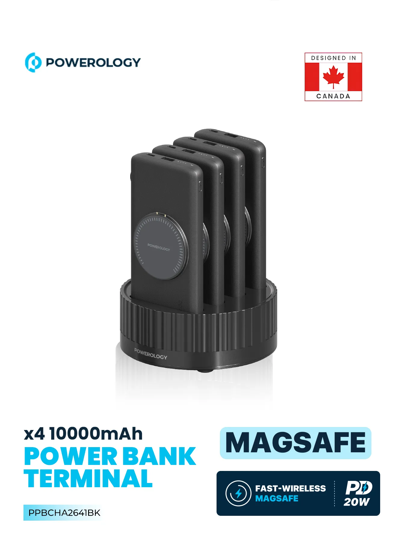 Charge all your devices efficiently with the Powereology 4-in-1 Power Bank, featuring 100W Power Delivery (PD), Quick Charge (QC), and wireless charging capabilities.