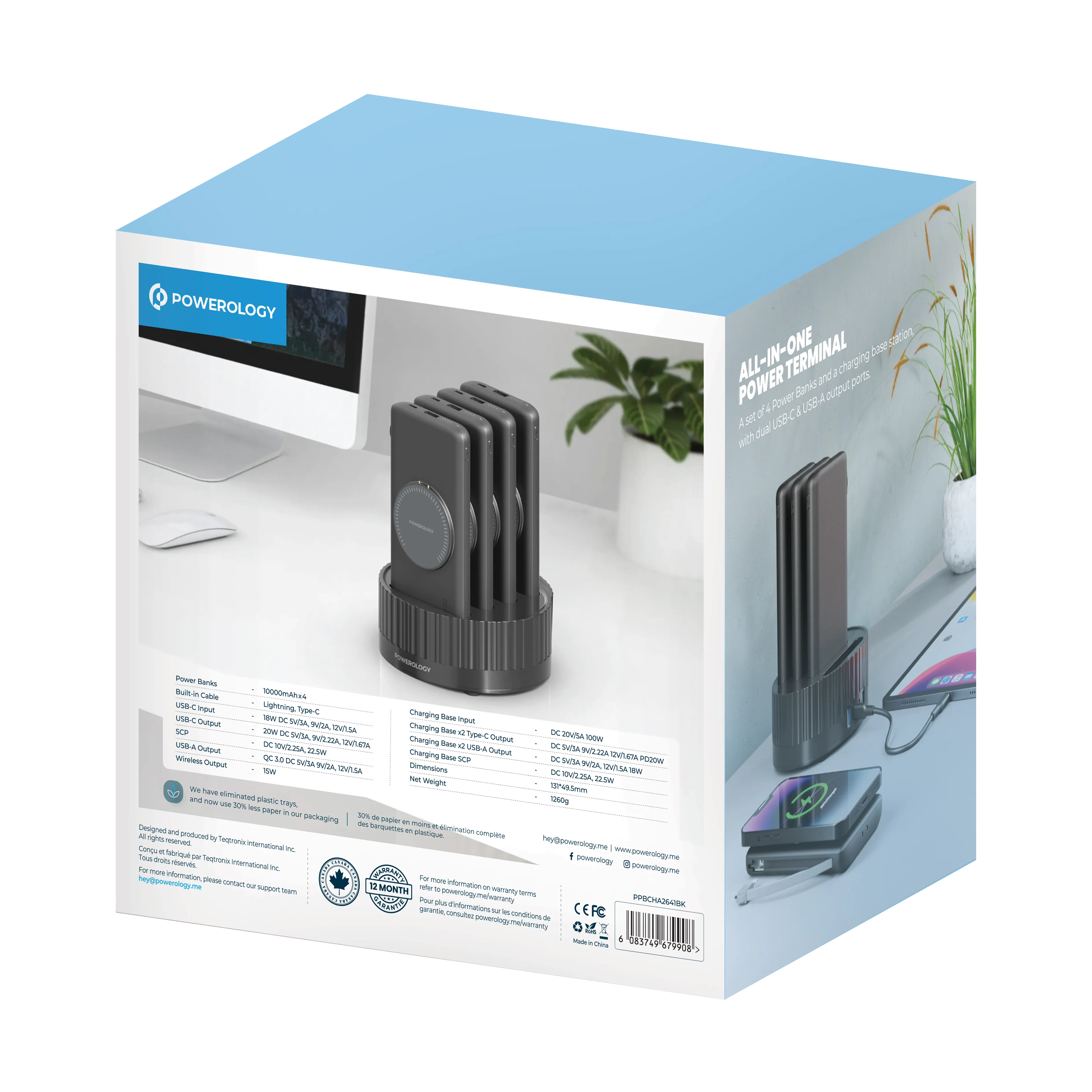 Powereology 4-in-1 Station 10000mAh PD 100W QC Wireless Power Bank – Black