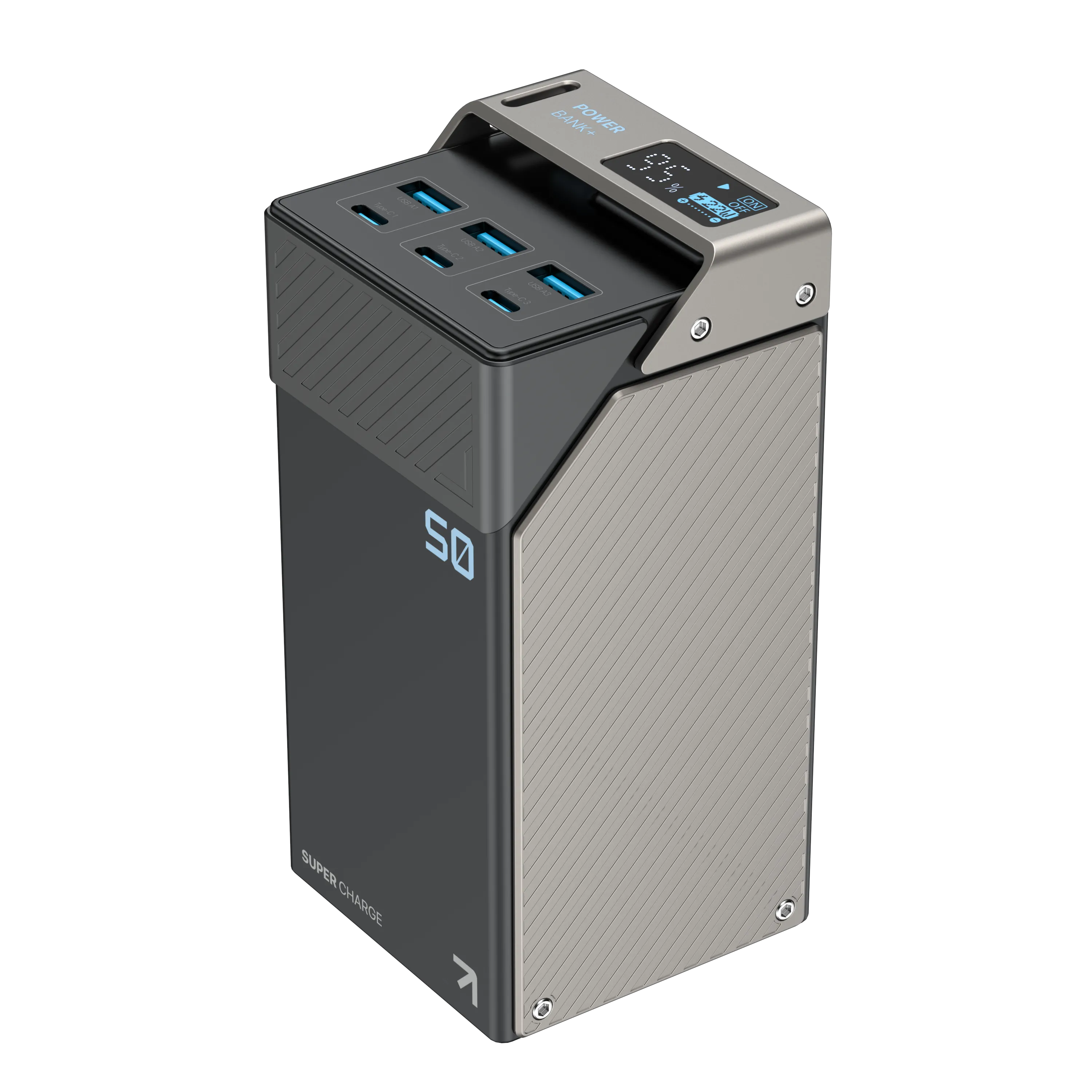 Power all your devices on the go with the Powereology 50000mAh High-Capacity Power Bank, featuring three PD Type-C ports and three PD USB-A ports for simultaneous fast charging.