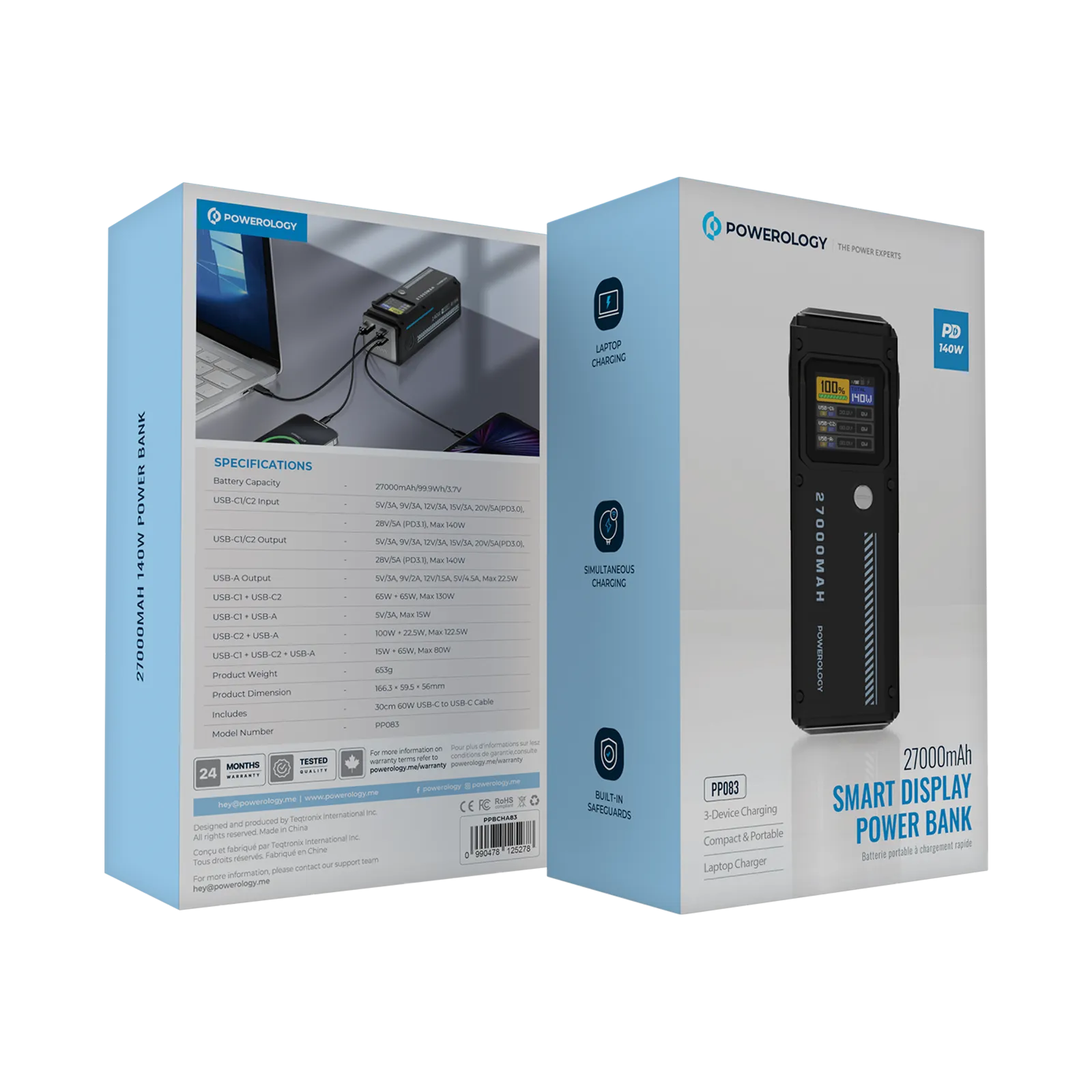 Powereology 140W Dual-Channel Smart Battery Display Power Bank – 27000mAh
