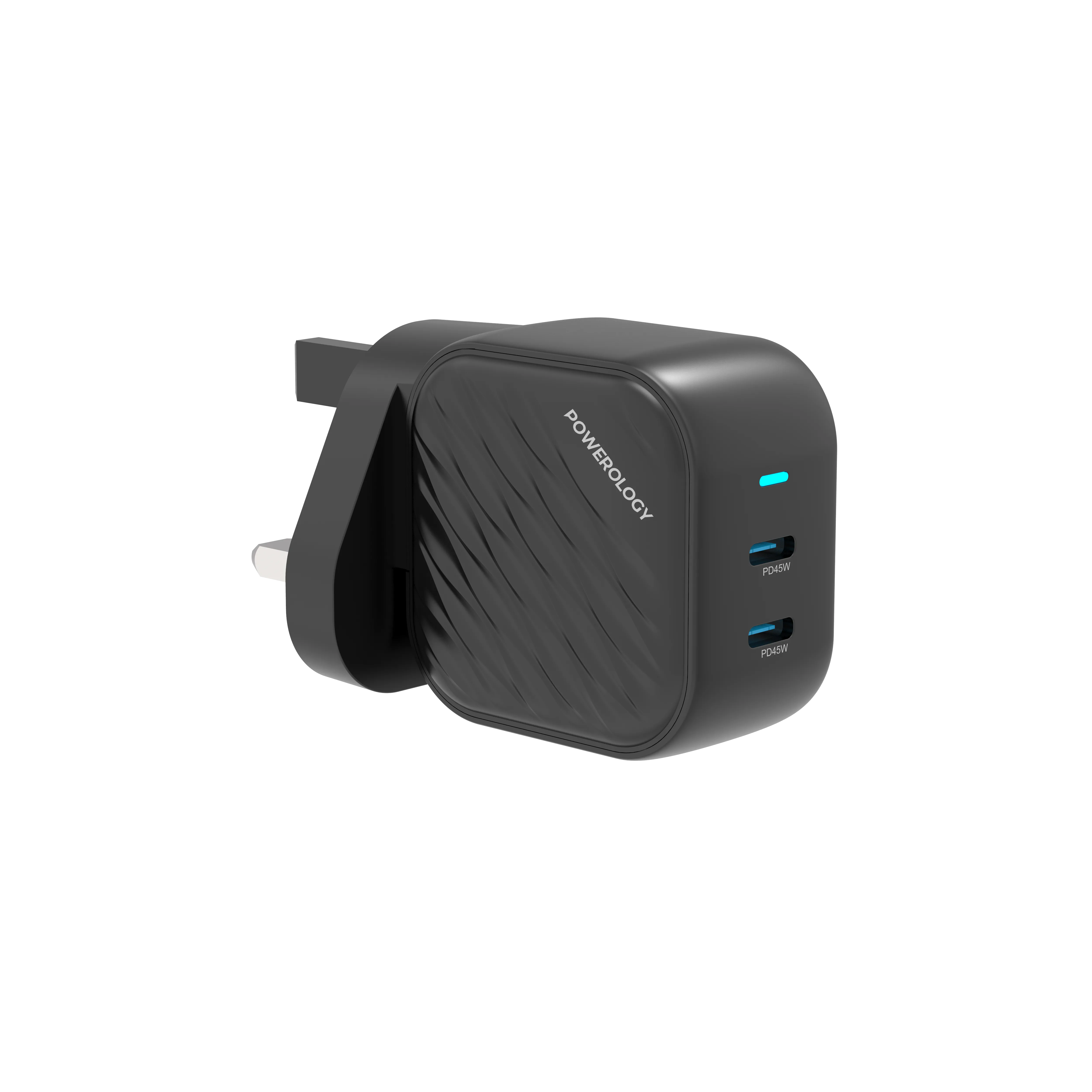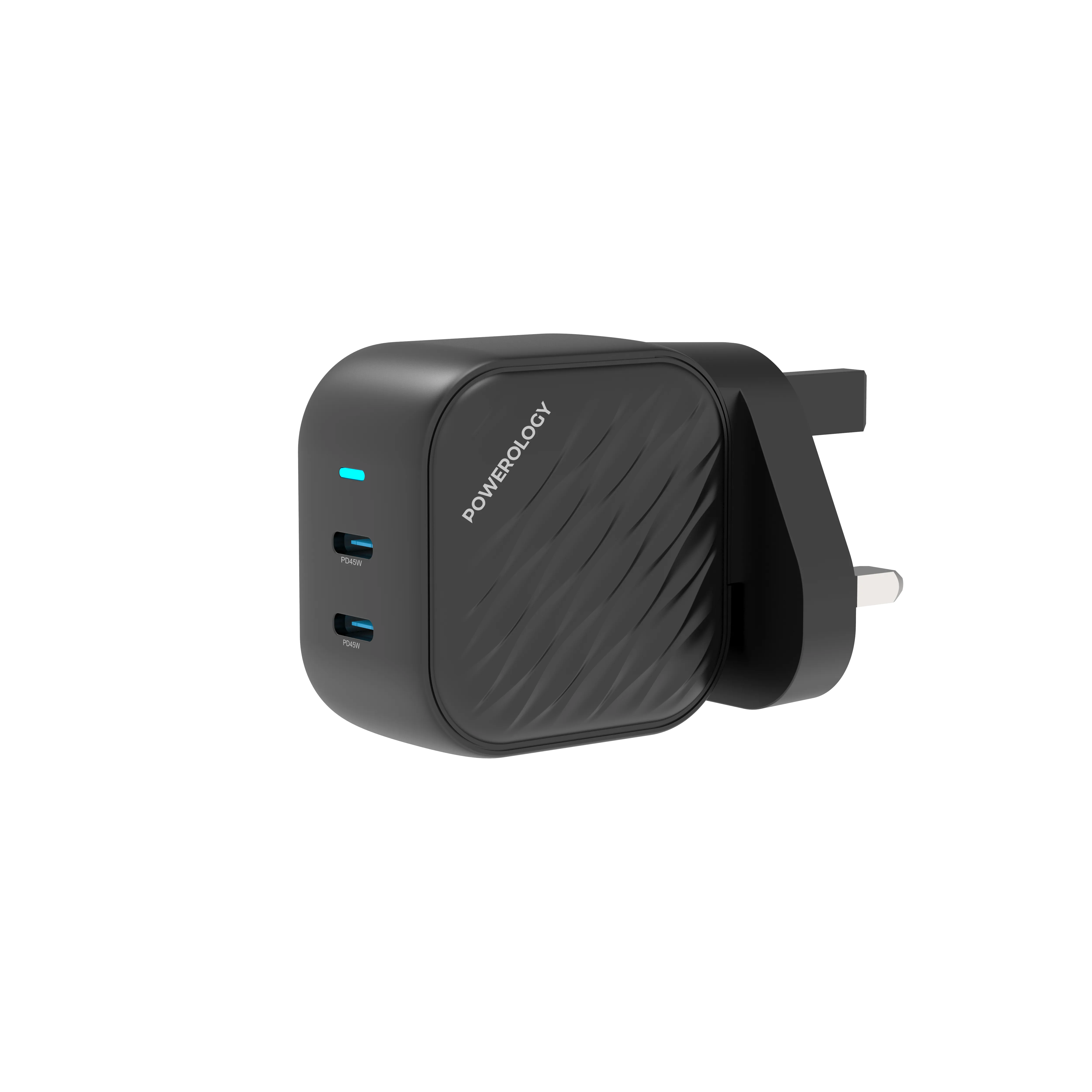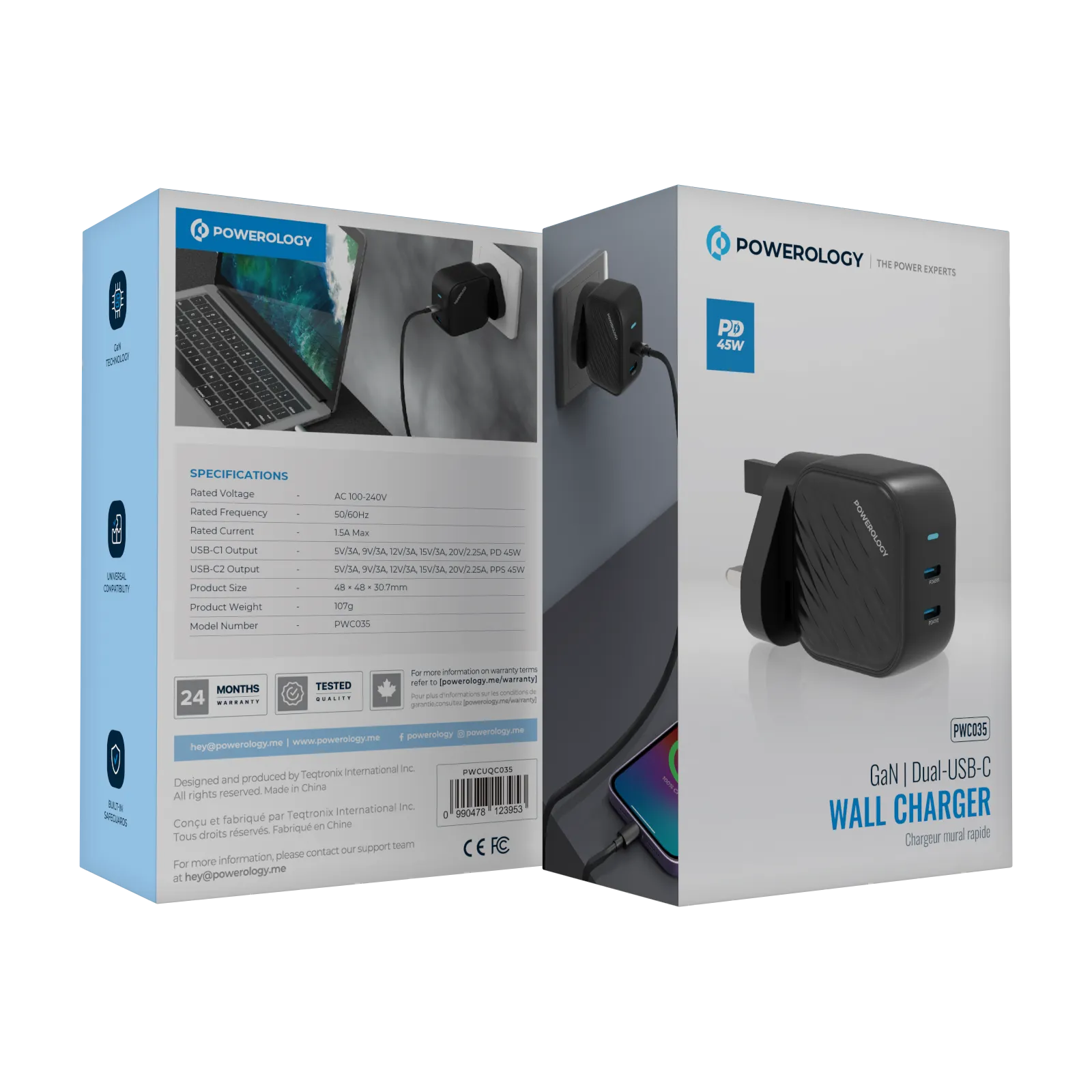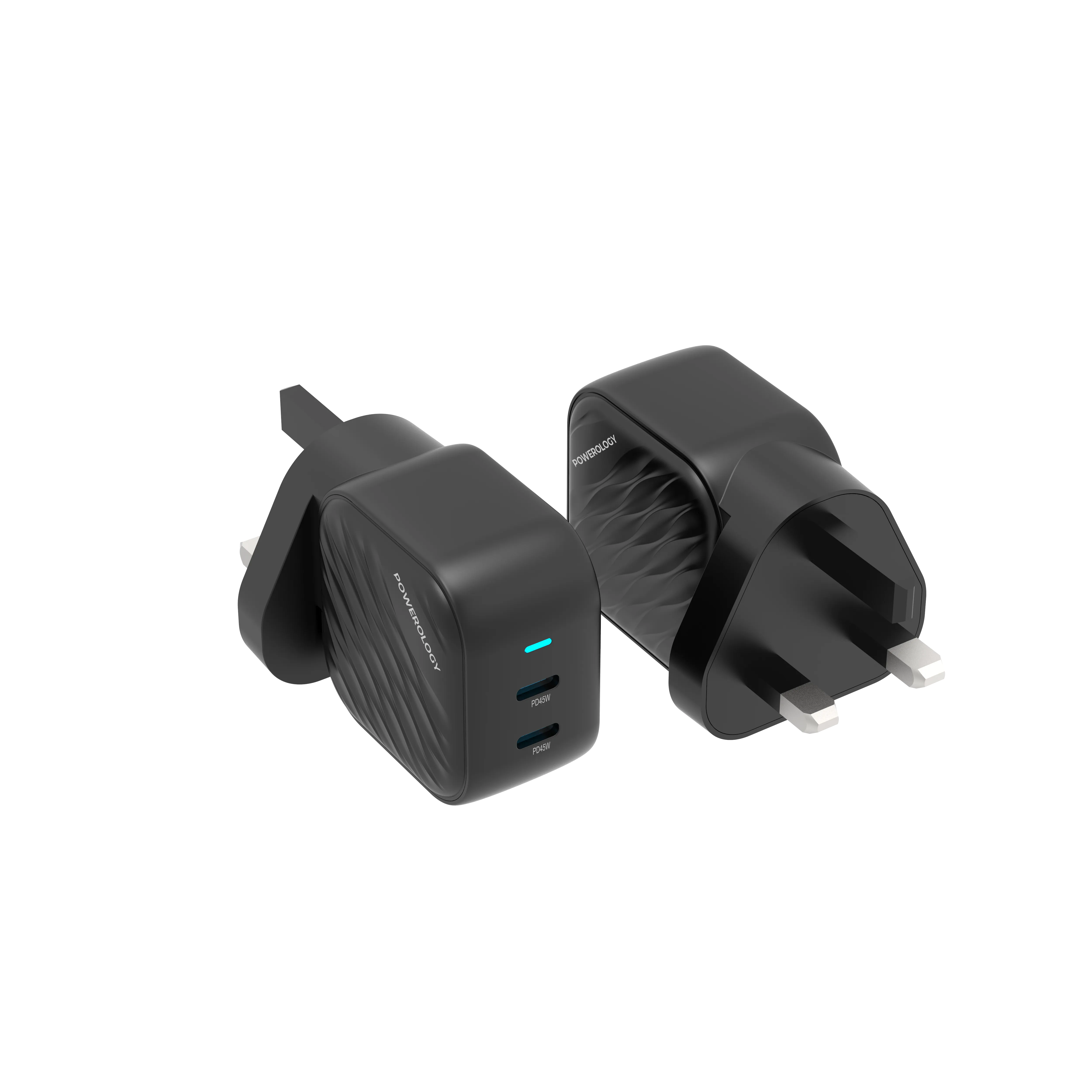 Powereology PD45W 2x USB-C Port Wall Charger – Black (UK Plug)